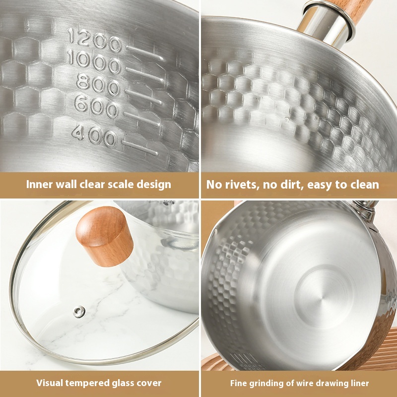 Japanese Stainless Steel Snow Pan Household Small Milk Pot Auxiliary Food Non-stick Pot Noodle Soup Pottant Noodle Pot Induction Cooker Small Pot