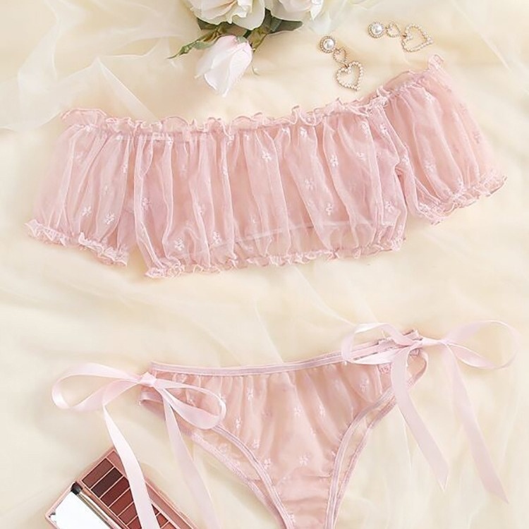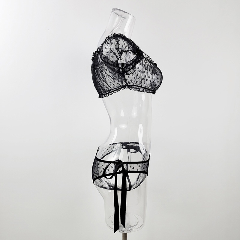 European And American Large Size One-shoulder Tube Top Sexy Underwear Lace Pure Desire Bra Panties Two-piece Perspective Set08
