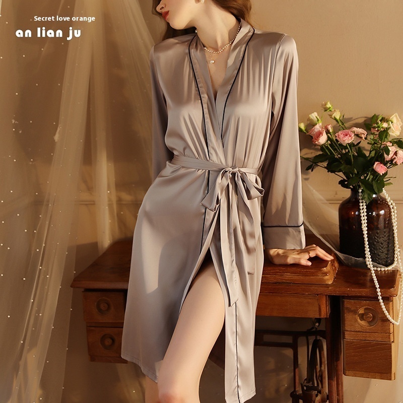Summer Ladies Hotel Sexy Cardigan Nightgown High-end Light Luxury Imitation Silk Fabric Pajamas Home Clothes285