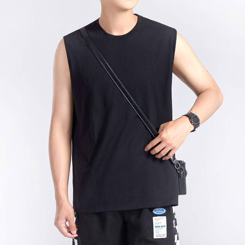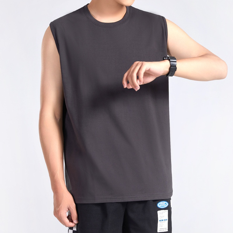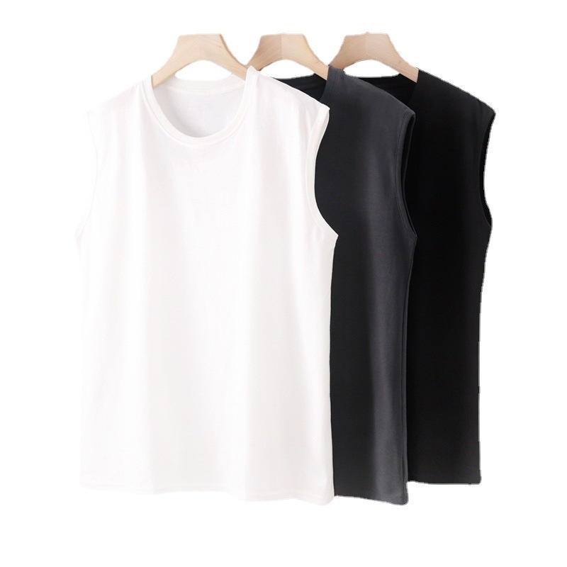Men's American Heavyweight Wide Shoulder Vest Sports Sleeveless T-shirt Round Neck Loose Bottoming Top Solid Color Breathable