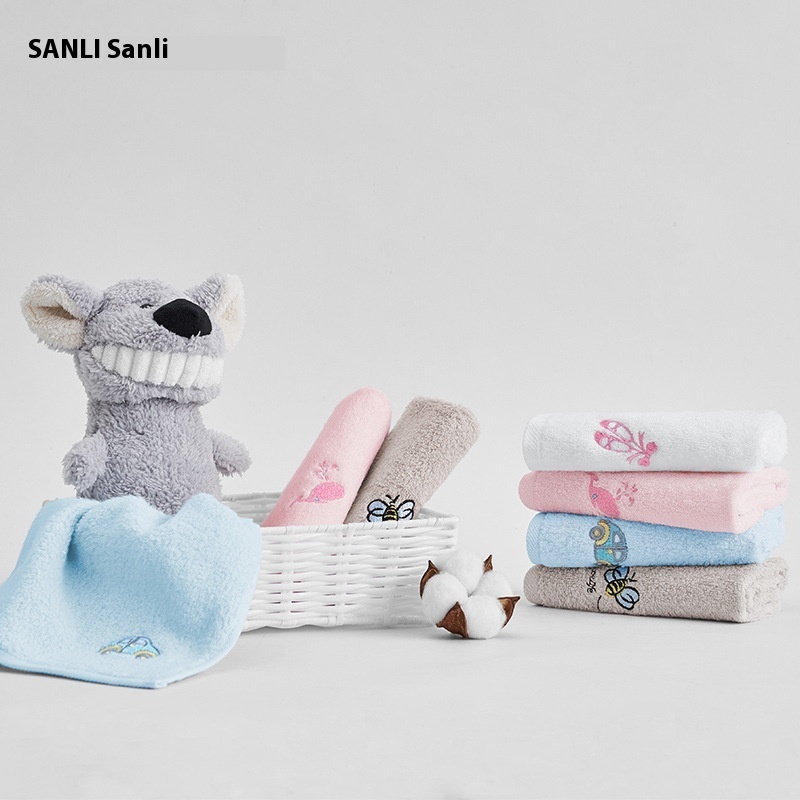 Sanli Towel Pure Cotton Small Square Towel Embroidered Small Square Towel Children's Face Towel Untwisted Pure Cotton Towel Gift
