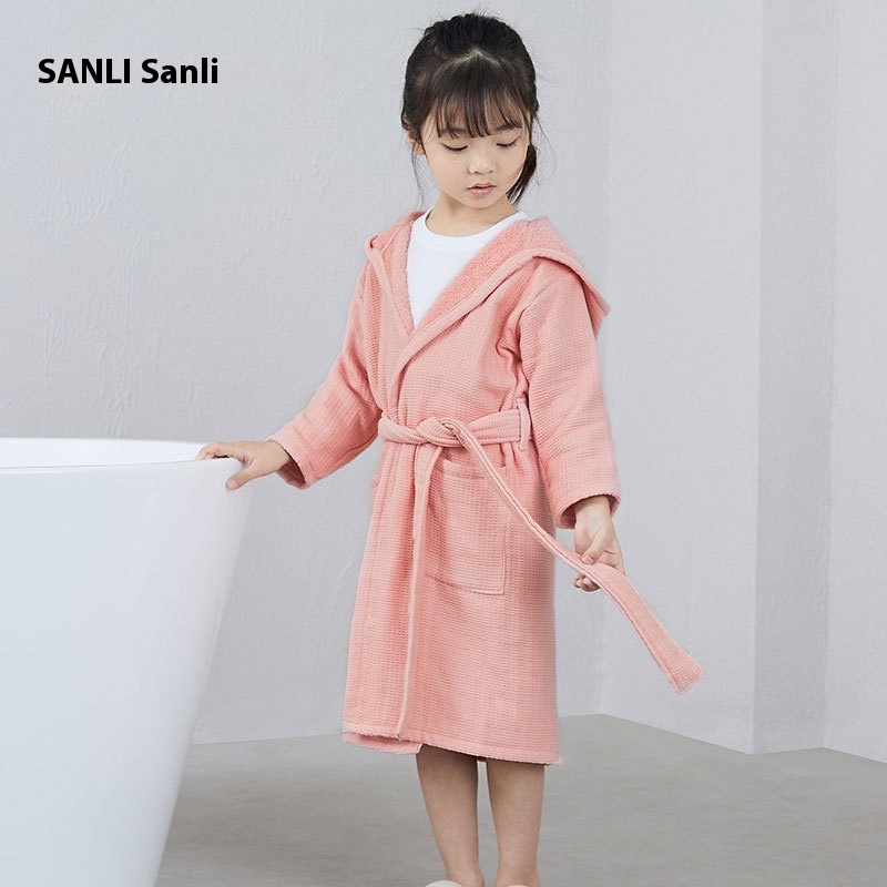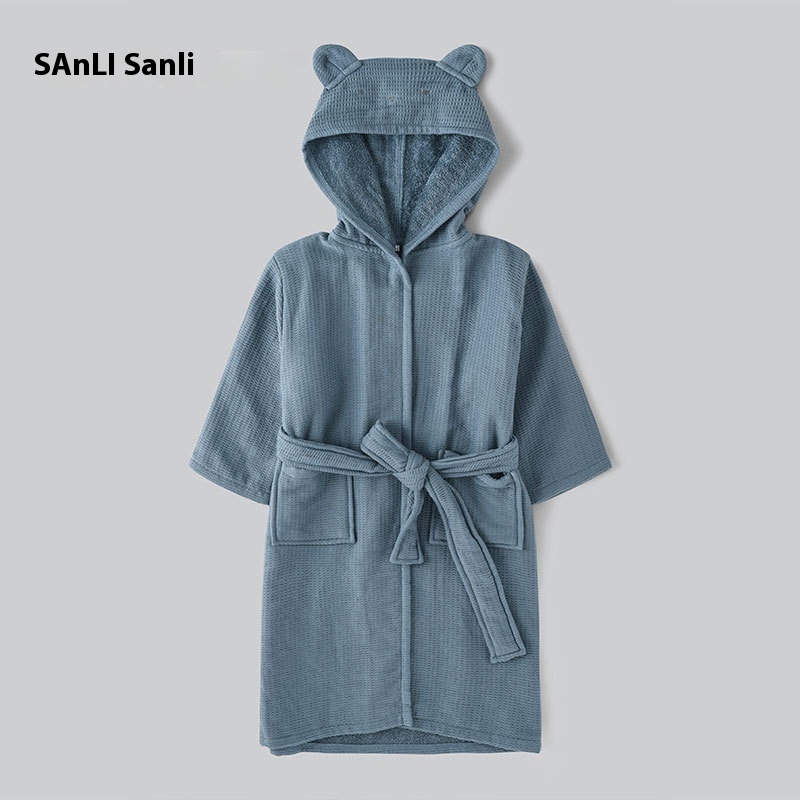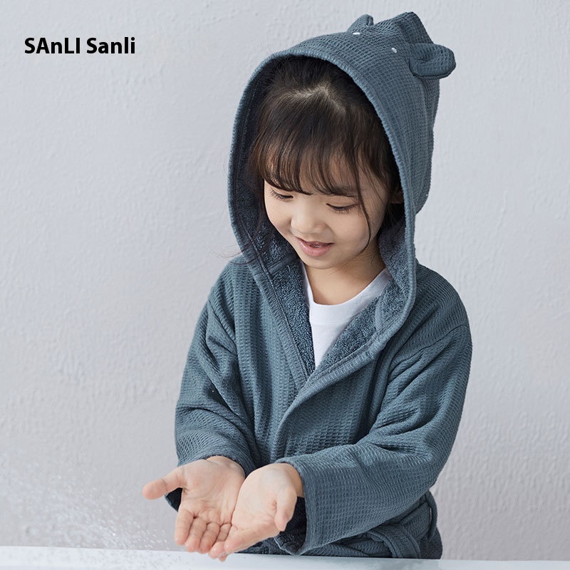 [Children's Bathrobe]Sanli Towel Cotton Towel Material Nightgown Long-sleeved Hooded Parent-child Bathrobe Pajamas