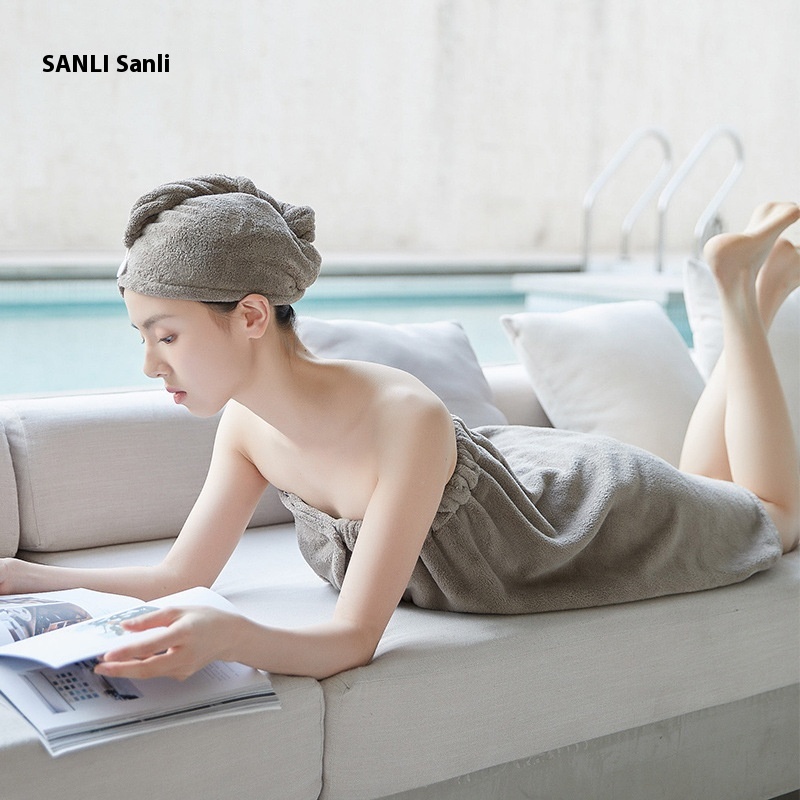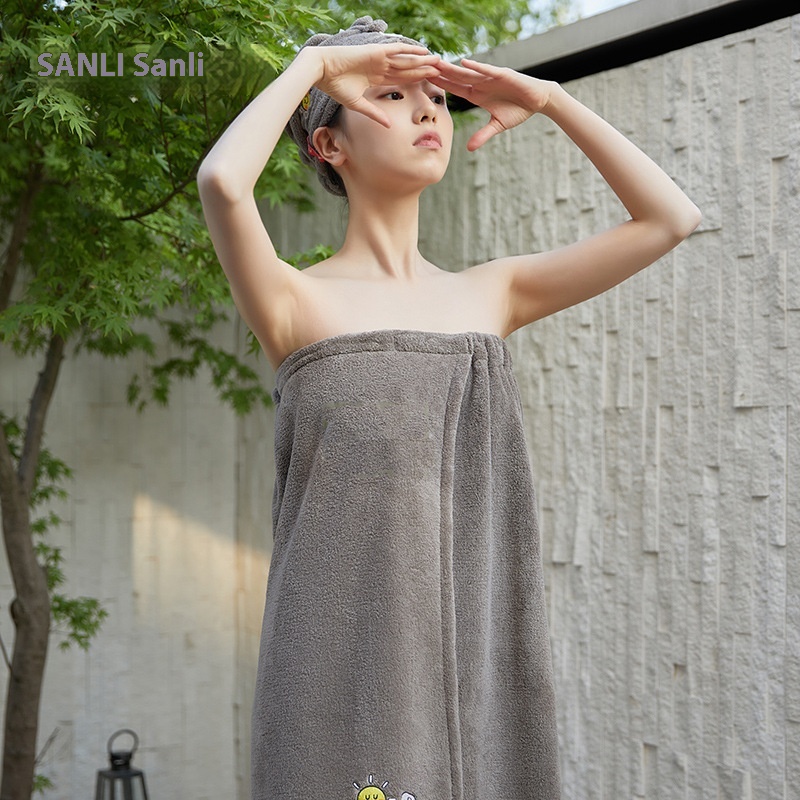 []Sanli Towel Microfiber Bath Skirt Cute Embroidered Bra Soft Absorbent Chest Wrap Coral Fleece Bath Skirt