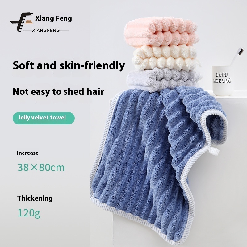 Xiangfeng Coral Velvet Corduroy Enlarged Thickened Towel Skin-friendly Soft Water-absorbent Striped Face Wash Towel