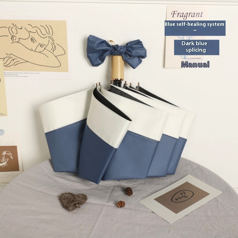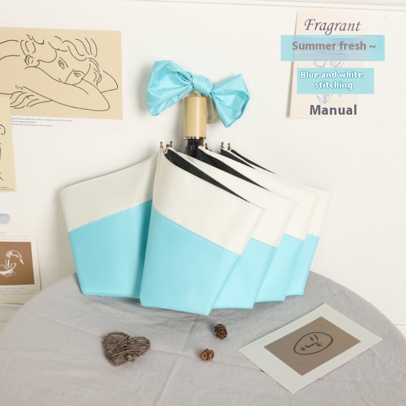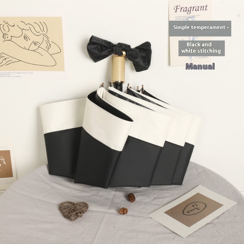 Light Luxury Contrast Color Umbrella Sun Umbrella Folding Black Glue Sunscreen UVProtection Simple Style Sunshade Automatic Umbrella