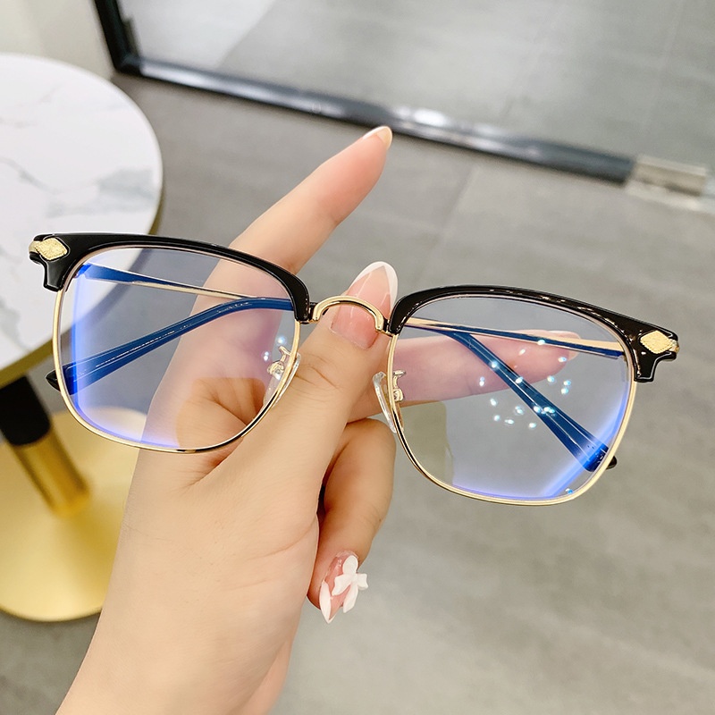 Fashion Half-frame Reading Glasses Anti-blue Light Metal Texture Glasses Frame Business Reading Glasses