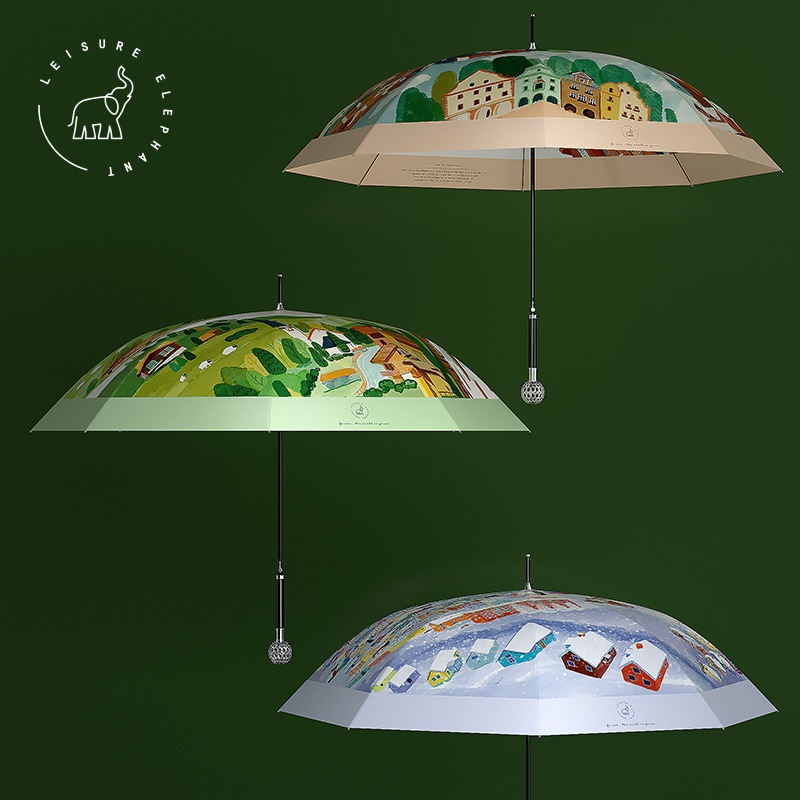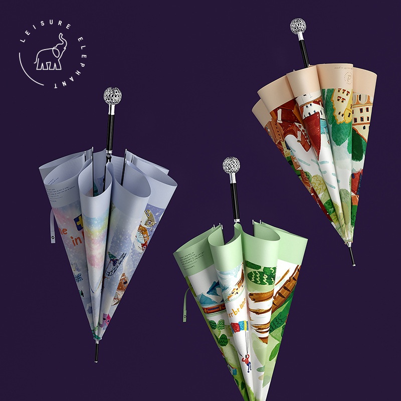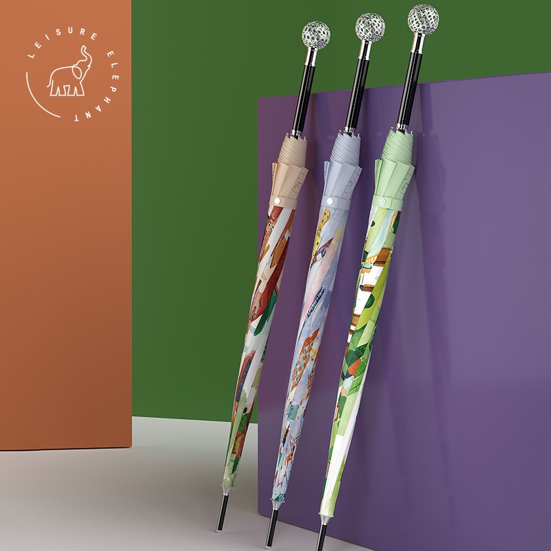 Xianxiang Creative Umbrella High-end Zinc Alloy Global Handle European Illustration Series Straight Umbrella Gift Long Umbrella For Women