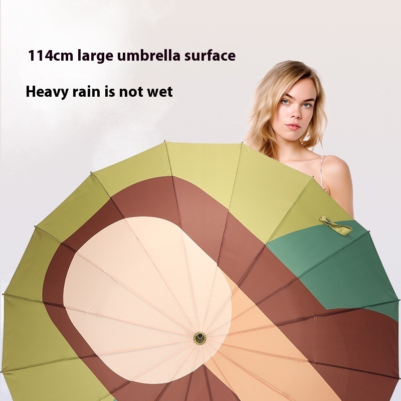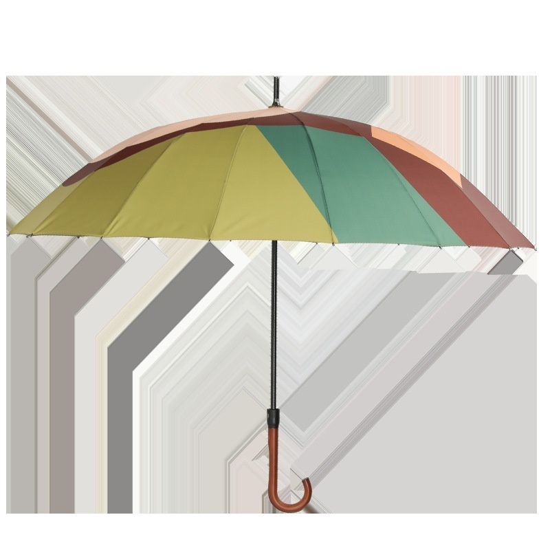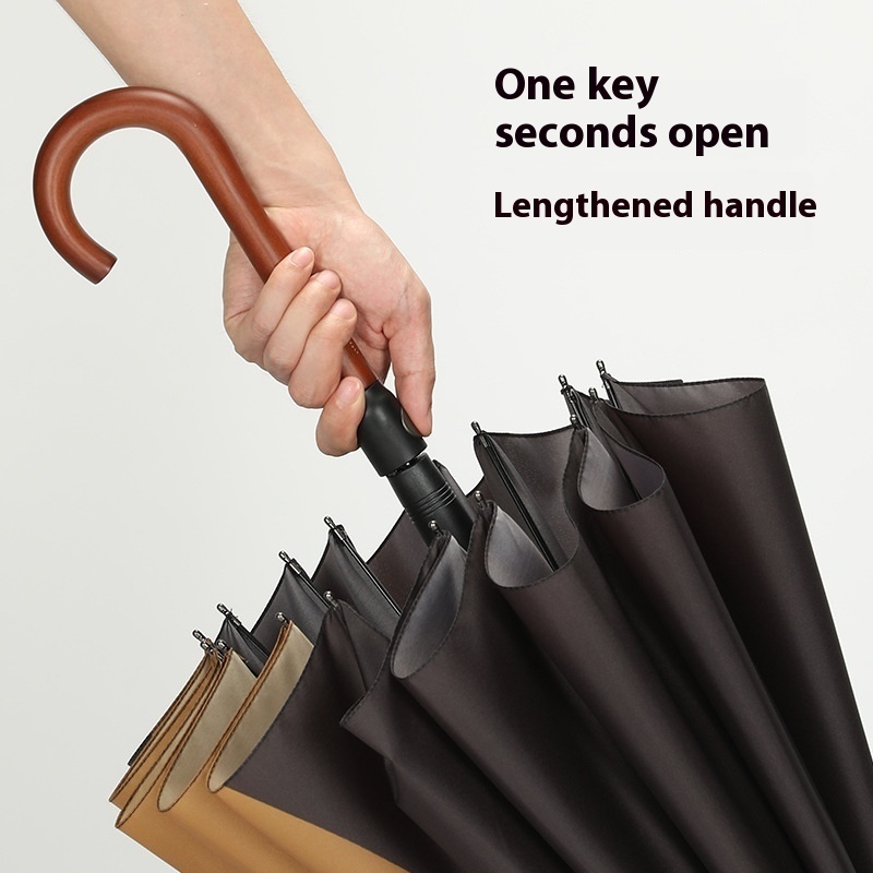 Xianxiang Original Illustration Series16 Bone Wood Curved Handle Straight Umbrella Reinforced Fiberglass Windproof And Rainproof Long Handle Umbrella