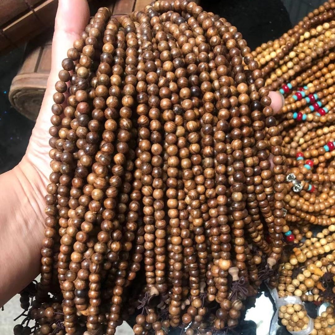 Small Leaf Red Sandalwood Agarwood Red Rosewood Buddha Beads Golden Nan108 Rosary Bracelet Street Stall Gift Bracelet