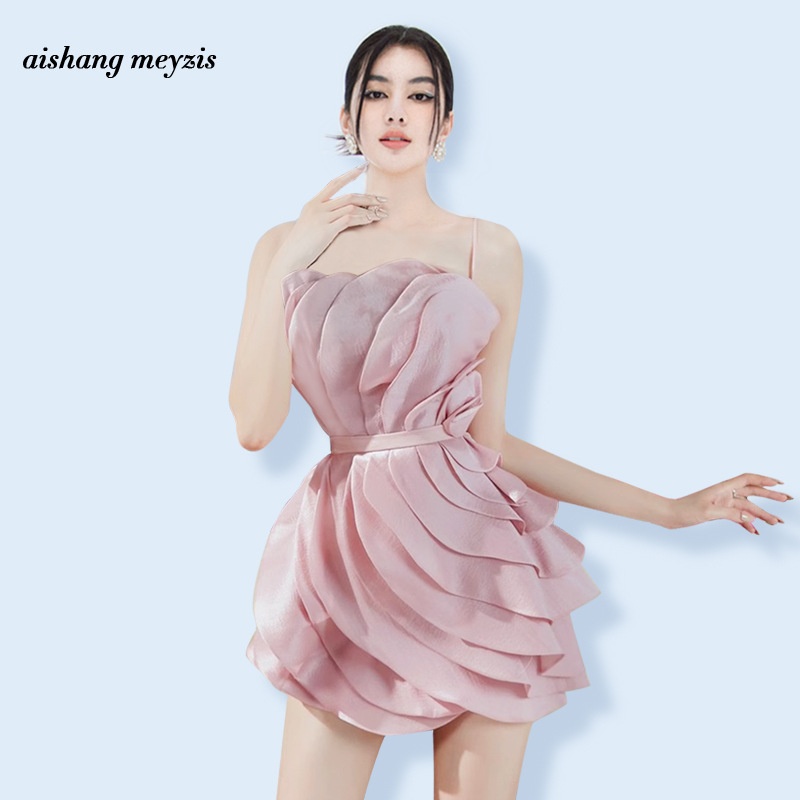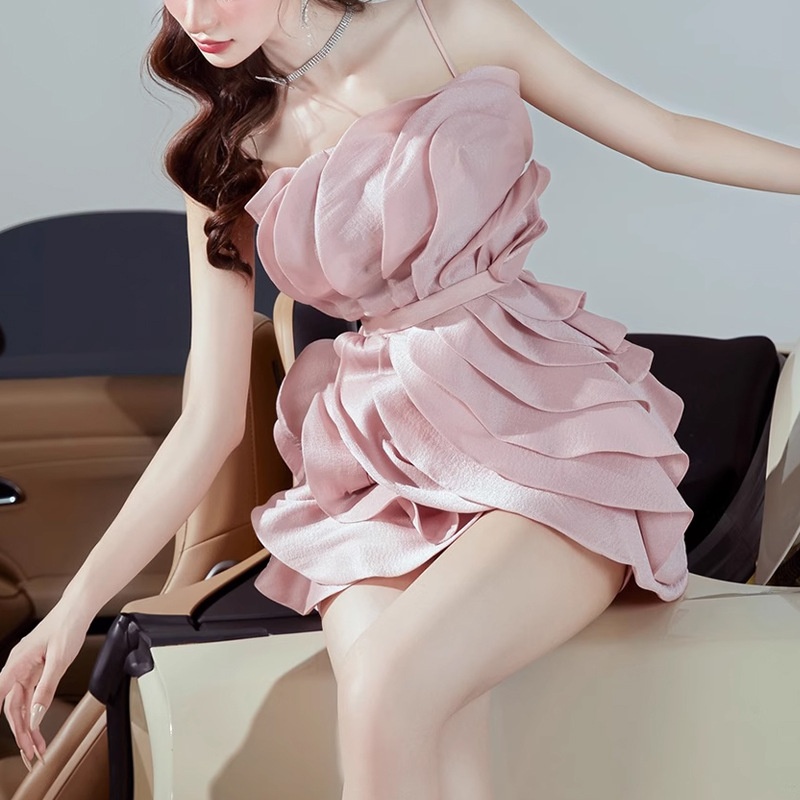 Niche Design One-piece Lotus Leaf Slim Short Dress