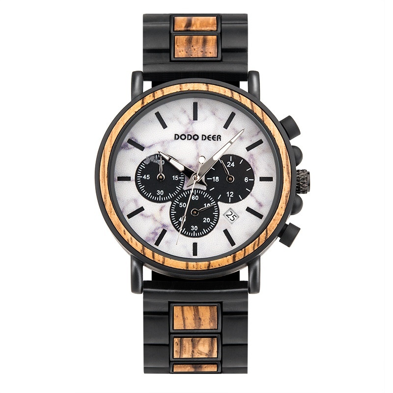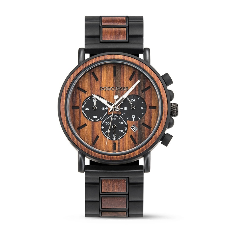 DODODEERWooden Watch Three-eye Men's Wooden Watch With Engraved For Foreign Trade