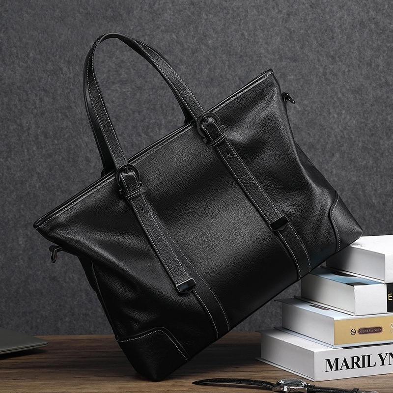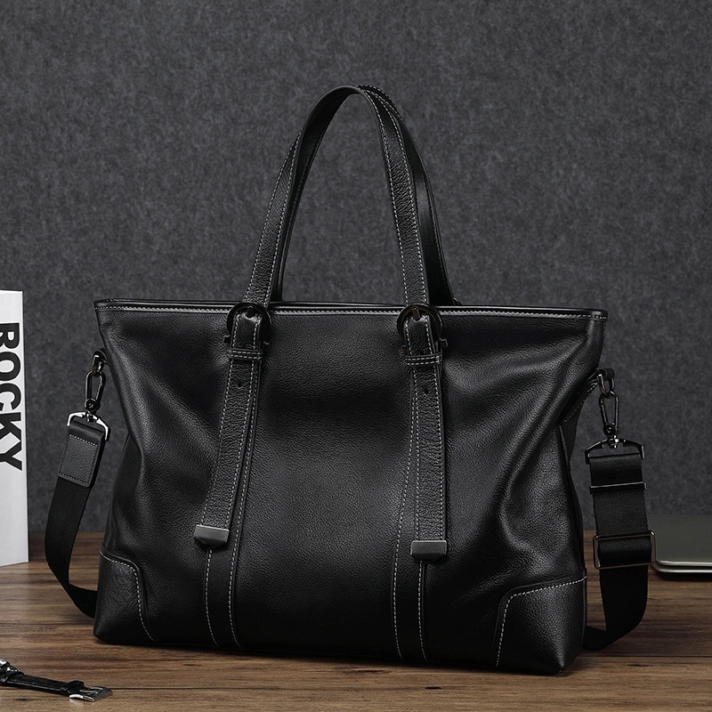 Men's Genuine Leather14 Inch Computer Bag Men's Handbag Cowhide Business Large Capacity Briefcase Gift One Piece Drop Shipping
