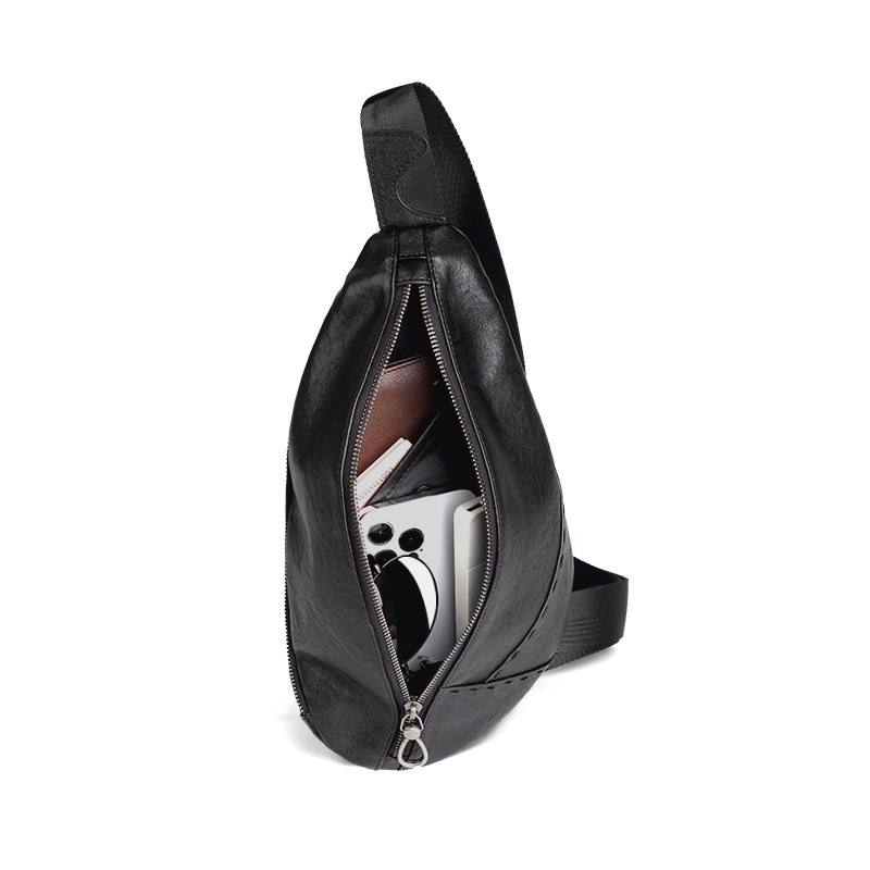 Men's Vertical Genuine Leather Chest Bag Men's Leisure Sports Messenger Bag Retro First Layer Cowhide Shoulder Bag Men's Bag