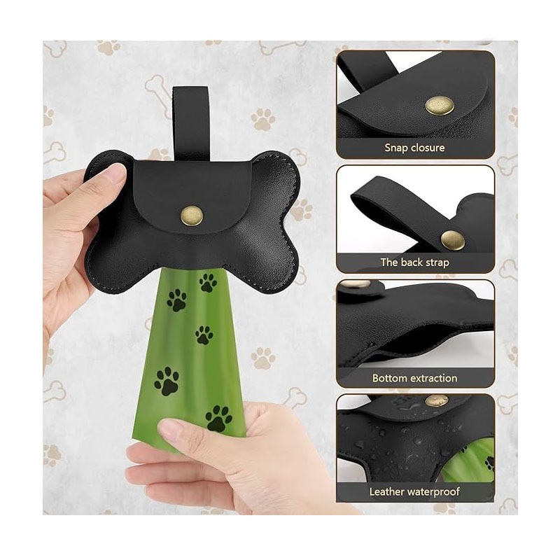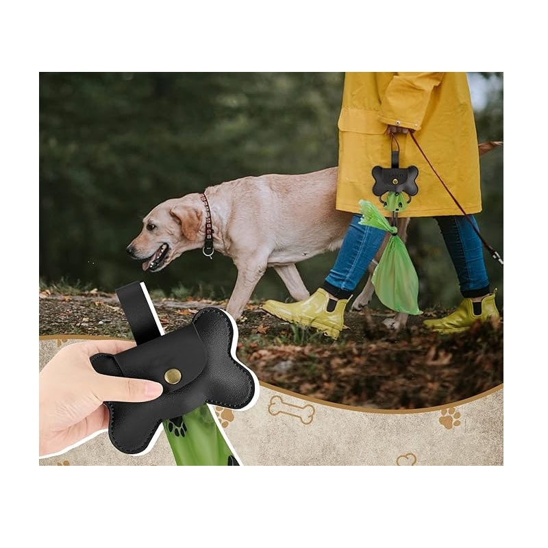 Bone Shape Pet Poop Bag Outdoor Pendant Dog Poop Bag Leather Cover Replaceable Poop Picker