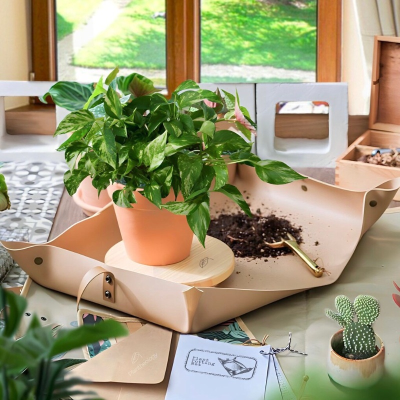 PULeather Foldable Soil Tray Gardening Plant Potting Mat Indoor Gardening Plant Mat