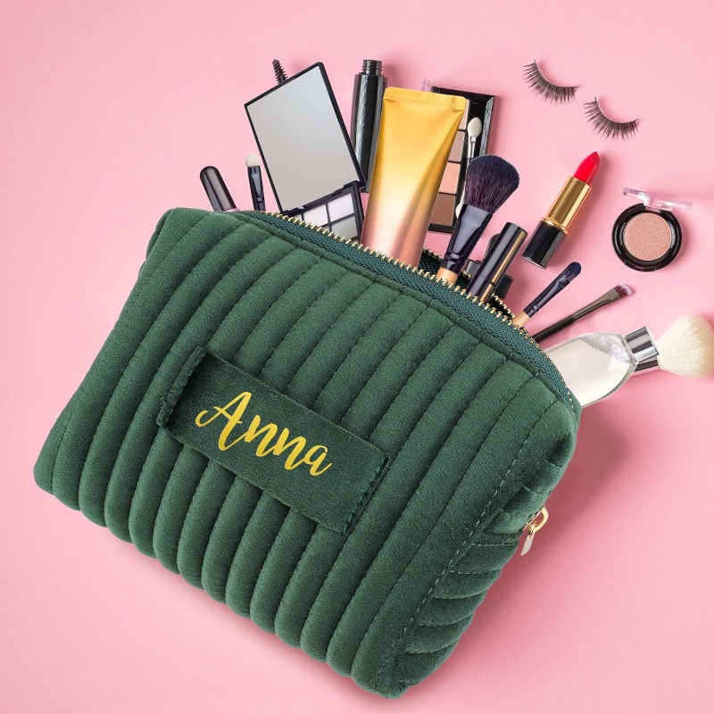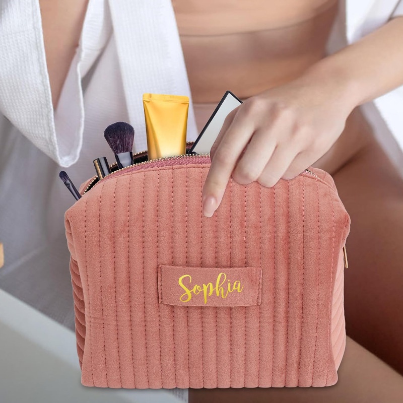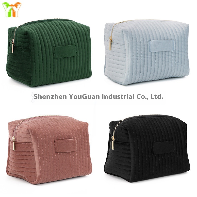 Plush Velvet Cosmetic Bag Embroidery Makeup Zipper Storage Bag Skin-friendly And Comfortable Pleated Cotton Wash Bag