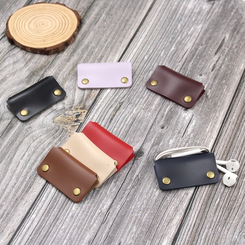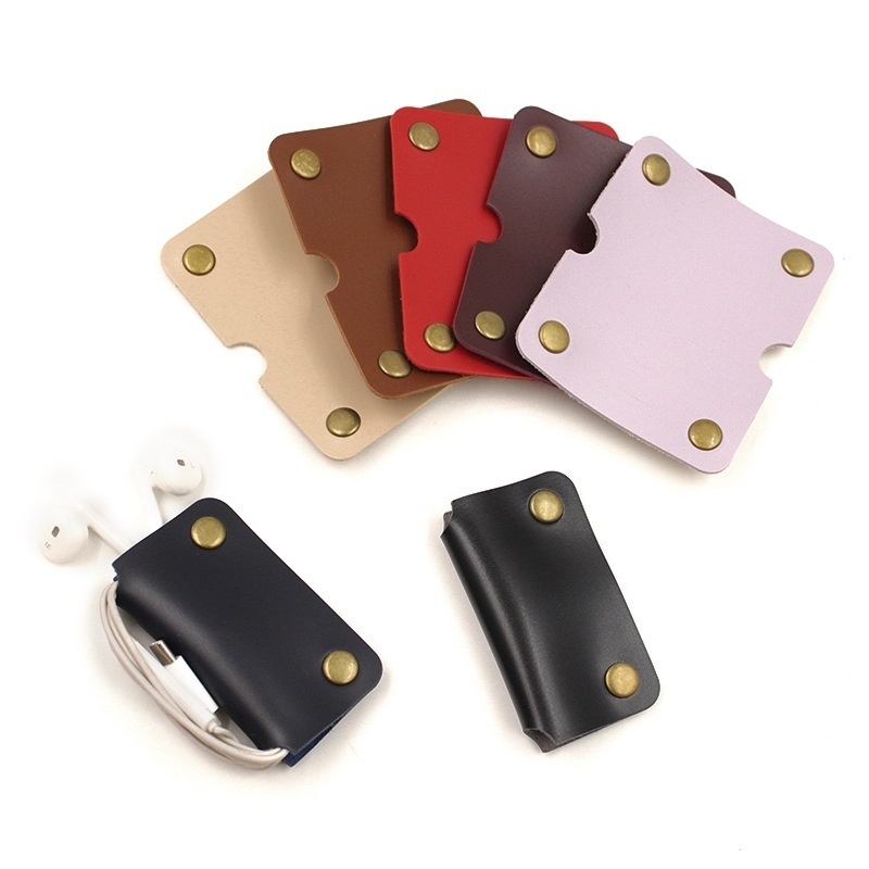 Data Cable Protective Cover PULeather Cable Winder Solid Color Headphone Cable Storage Mobile Phone Charging Cable Storage Protective Cover