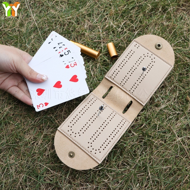 Outdoor Cribbage Card Game Scoreboard European And American Popular CRIBBAGEChessboard Storage Leather Case