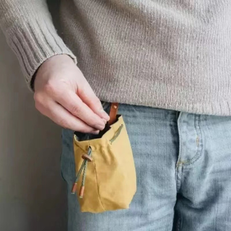 Canvas Dog Food Bag Drawstring Pet Snack Bag Convenient Waist Hanging Pet Foraging Bag