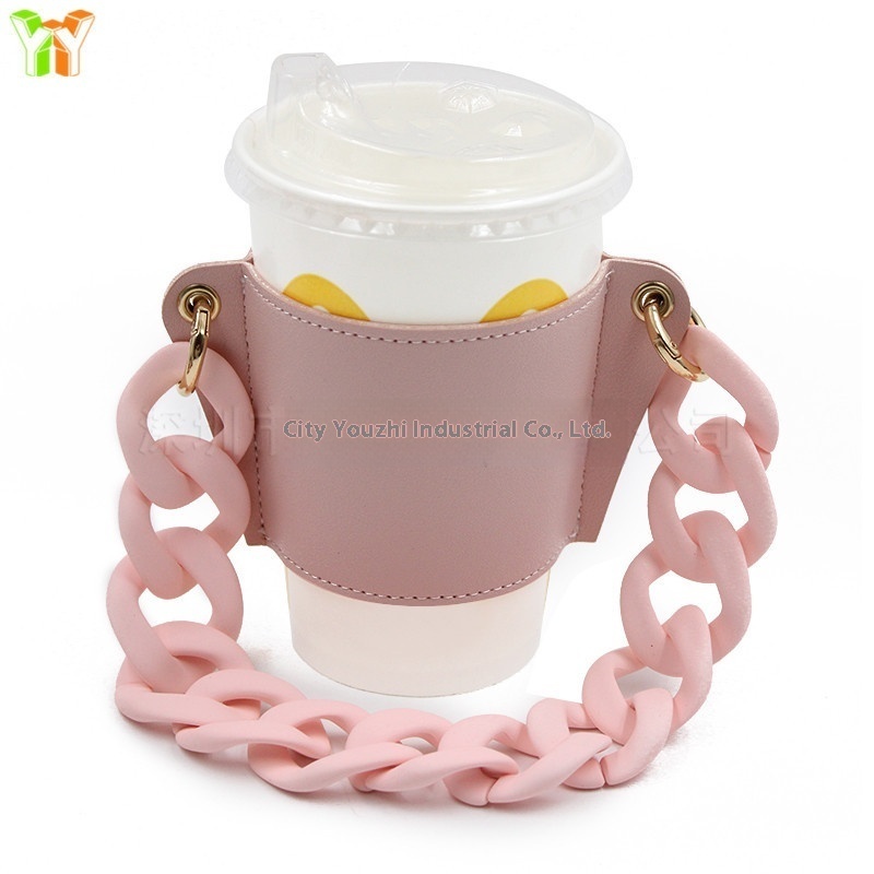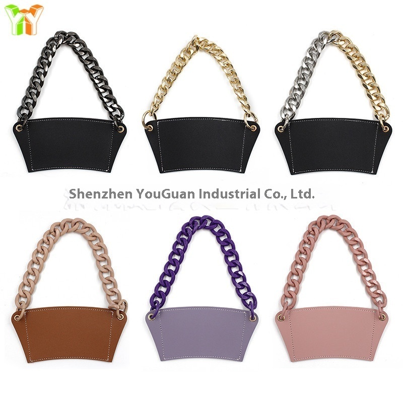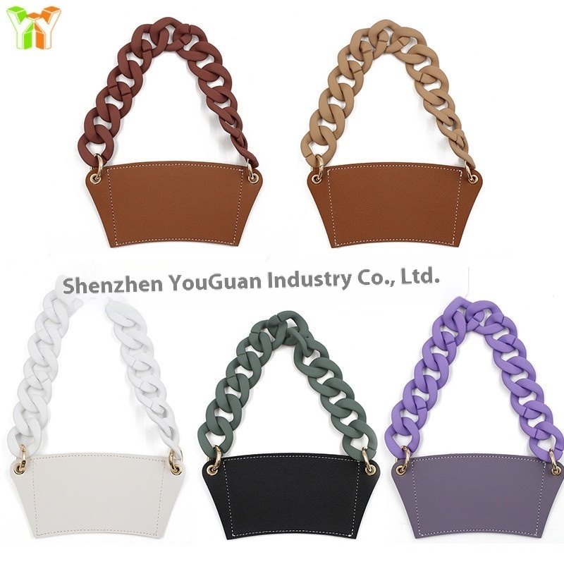 European And American Style Chain Cup Holder Creative Metal Chain Milk Tea Cup Holder Acrylic Chain Coffee Cup Bag