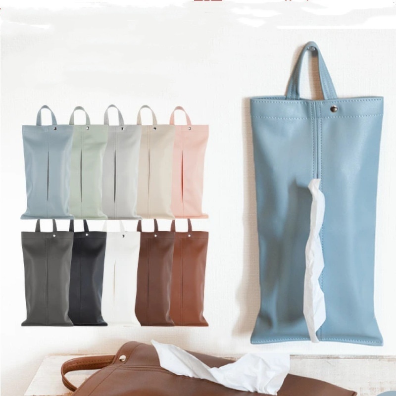 Japanese Style Wall-mounted Leather Tissue Box Car Hanging Tissue Bag Drawer Tissue Cover Soft Tissue Box Chair Back