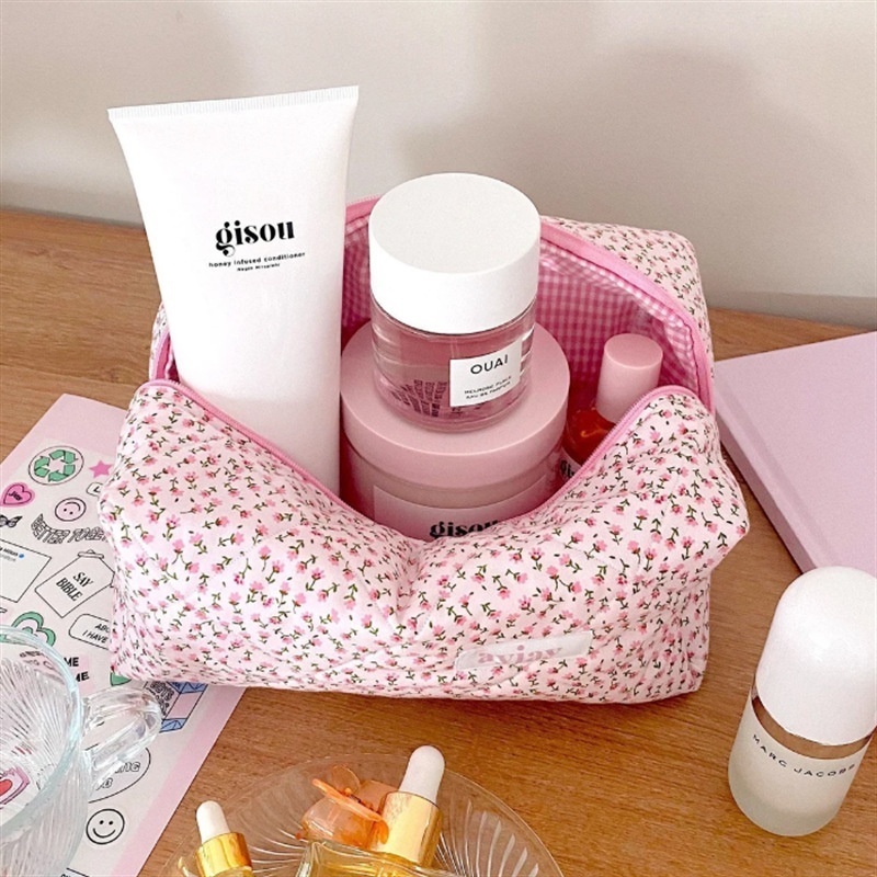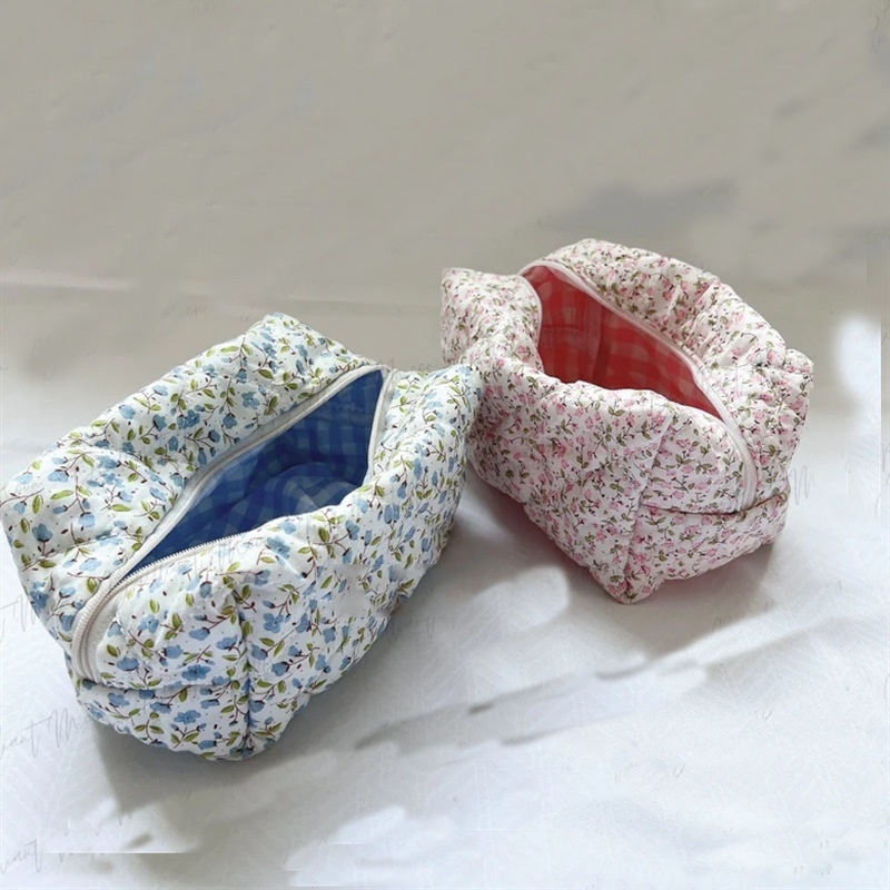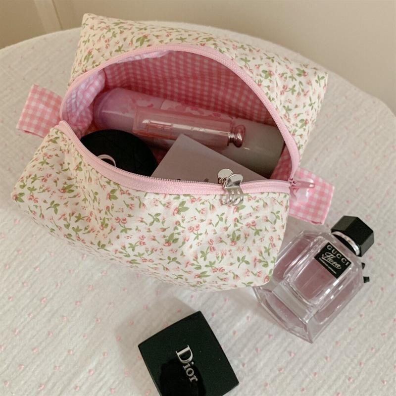 Floral Fabric Toiletry Bag Cosmetic Bag Fashionable Women's Hand-held Cosmetic Bag Fluffy Coquette Cosmetic Bag