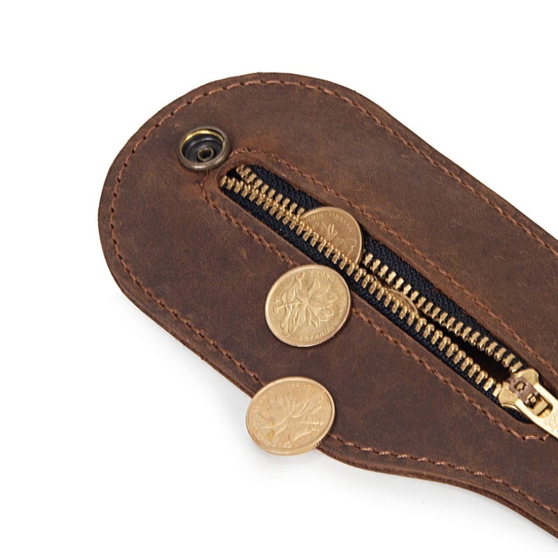 One Piece Of Cowhide Self-defense Coin Bag Leather Racket Waist Hanging Coin Purse Outdoor Men's EDCTool Bag