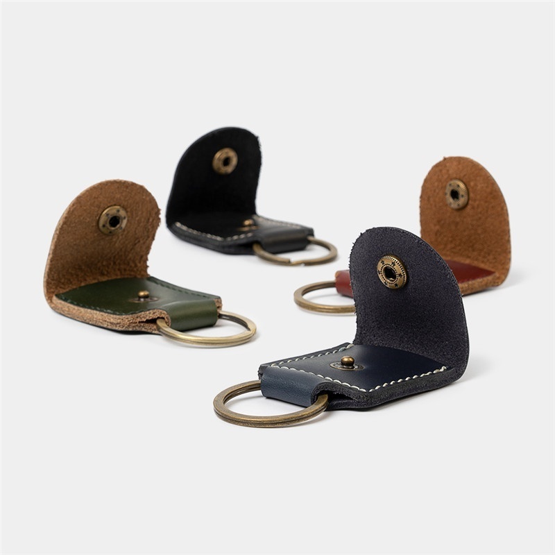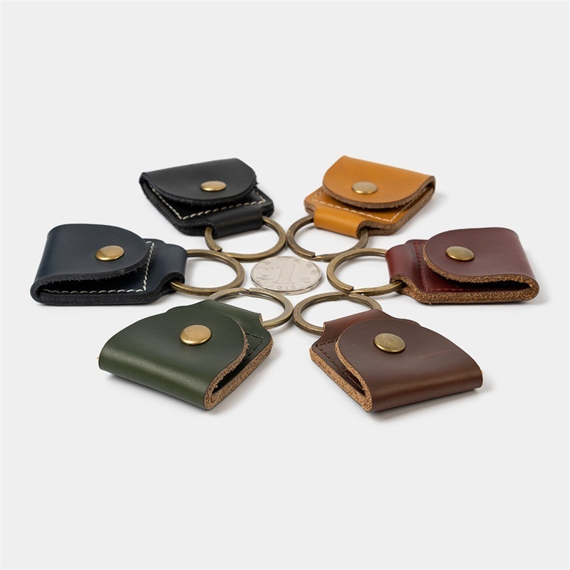 SCrazy Horse Leather Keychain Mini One Dollar Coin Bag Guitar Pick Storage Bag Keychain