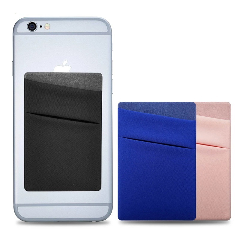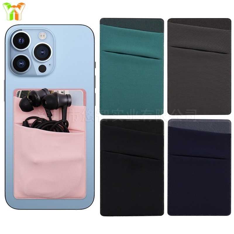 Lycra Sticky Mobile Phone Back Sticker Double Layer Elastic Lycra Mobile Phone Bag Double Oblique Double Card Slot Mobile Phone Sticker Card Bag