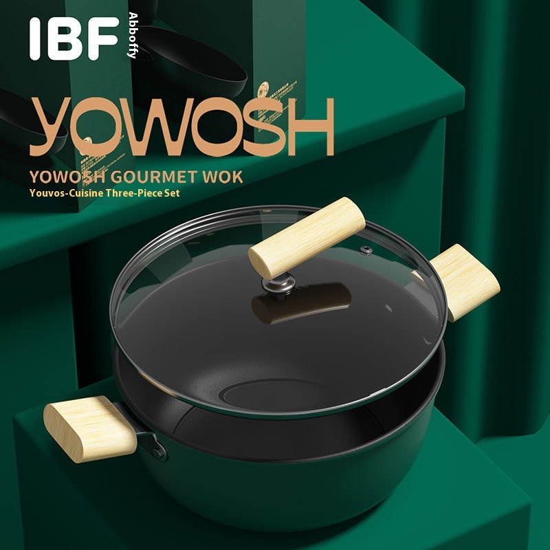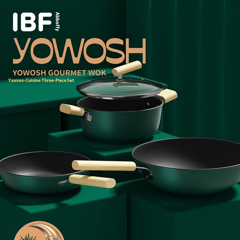 A B O F I Three-piece Pot Set Non-stick Pan Frying Pan Soup Pot Frying Pan Household Induction Cooker Kitchen Pot