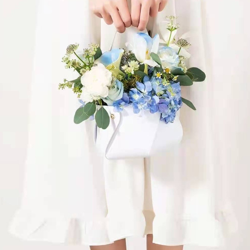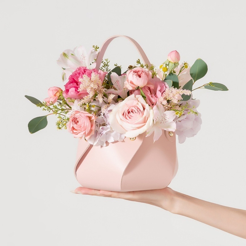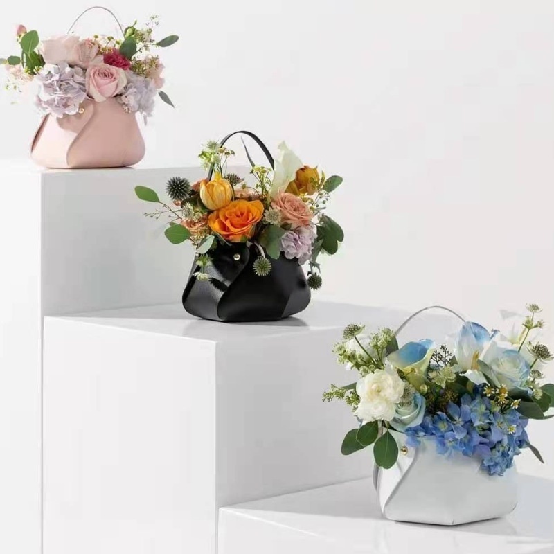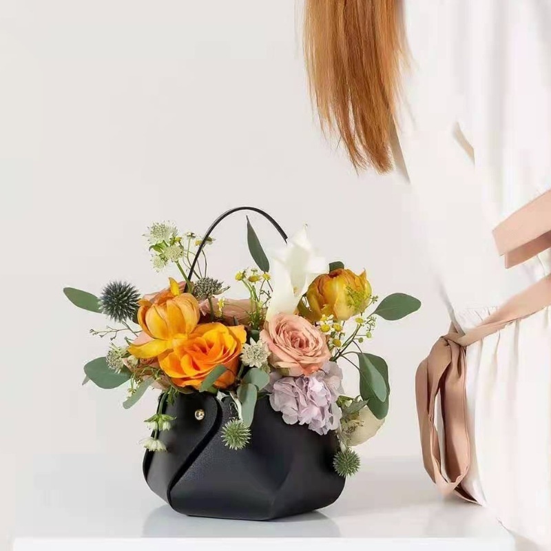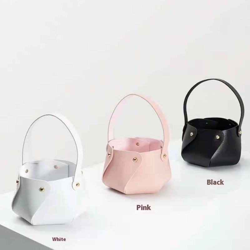 Nordic Style Leather Flower Basket Valentine's Day Flower Basket Handbag Holiday Gift Hand Basket