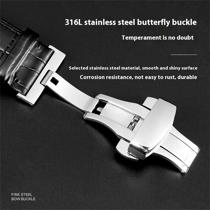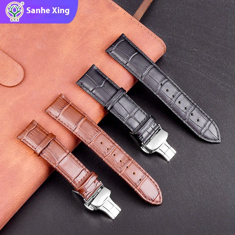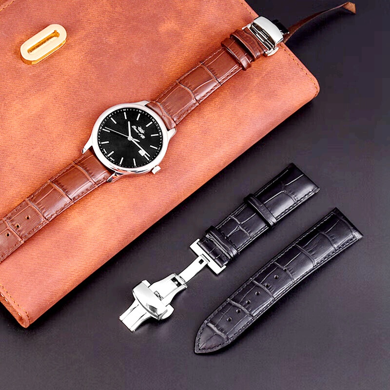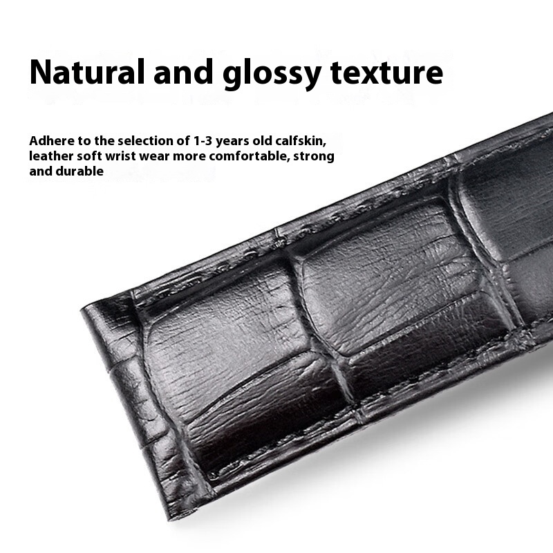Watch Accessories Butterfly Buckle Bamboo Pattern Genuine Leather Watch Strap First Layer Cowhide Watch Strap Men And Women Universal Leather Strap