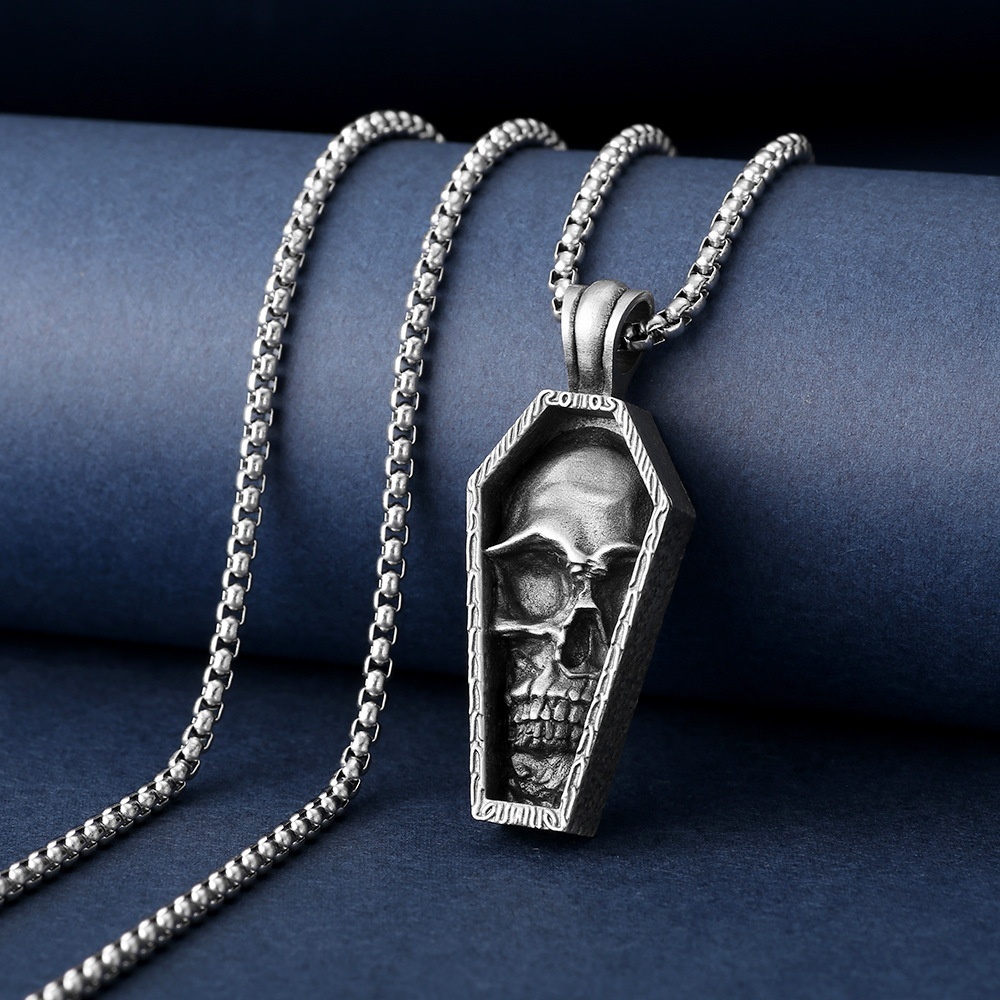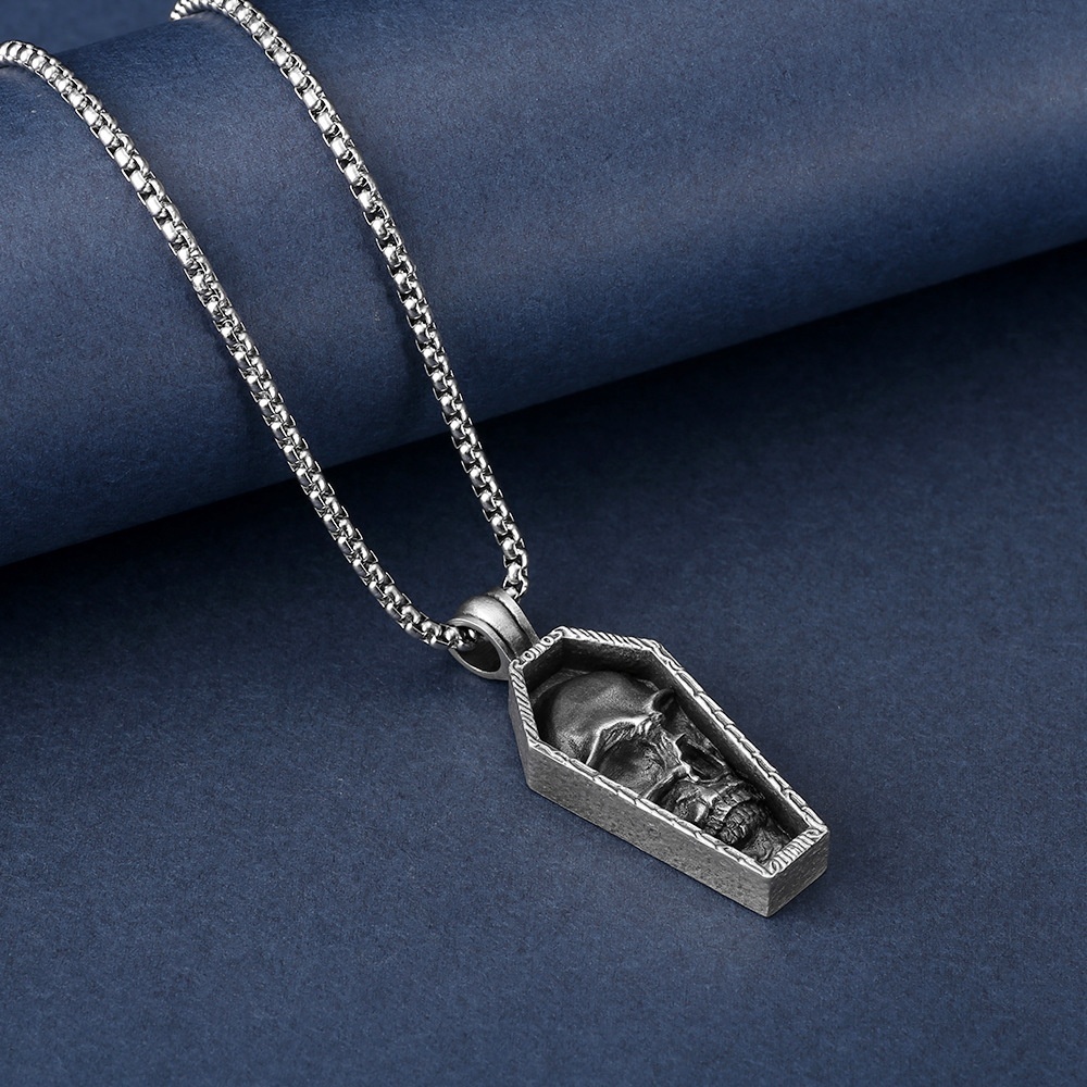 Men's Punk Style Necklace Coffin Skull Pendant Personalized Titanium Steel Hip-hop Necklace Jewelry