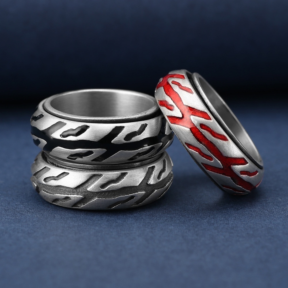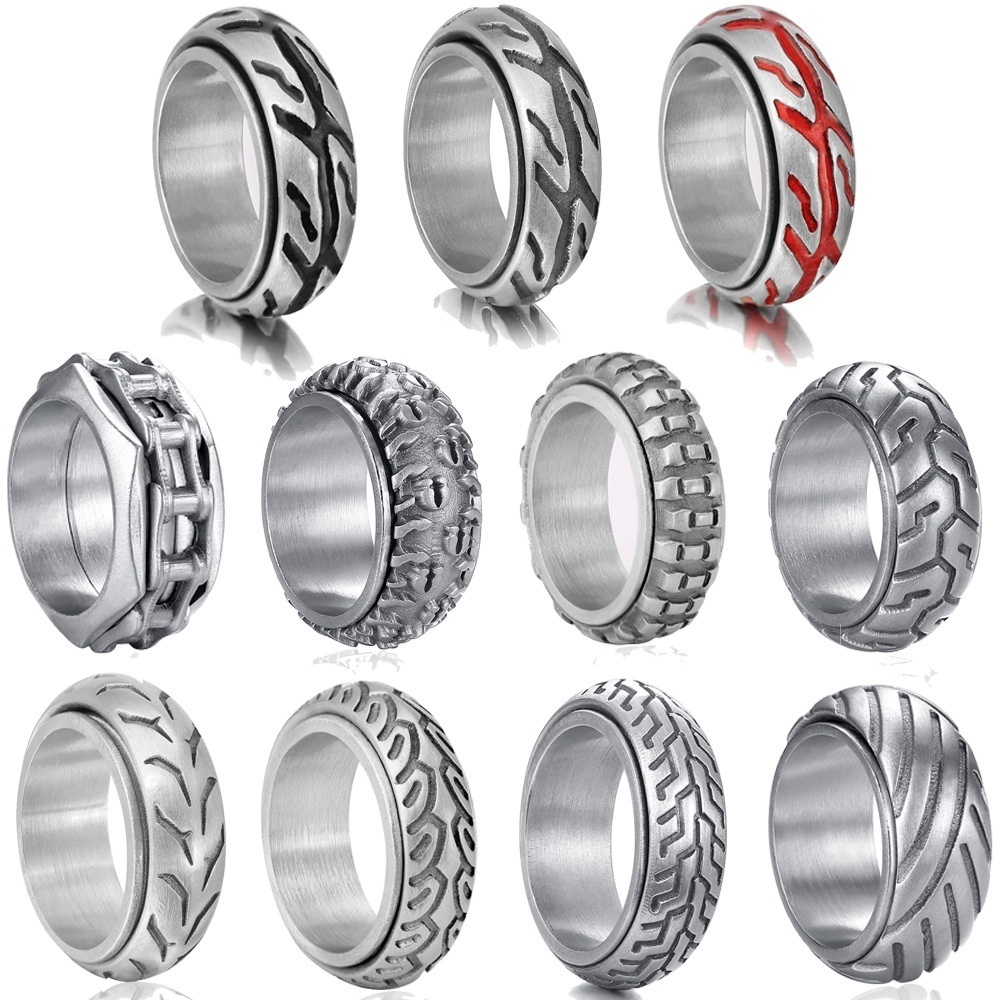 European And American Rotating Ring Men's Decompression Punk Style Hip-hop Motorcycle Tire Ring