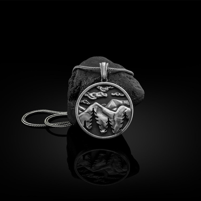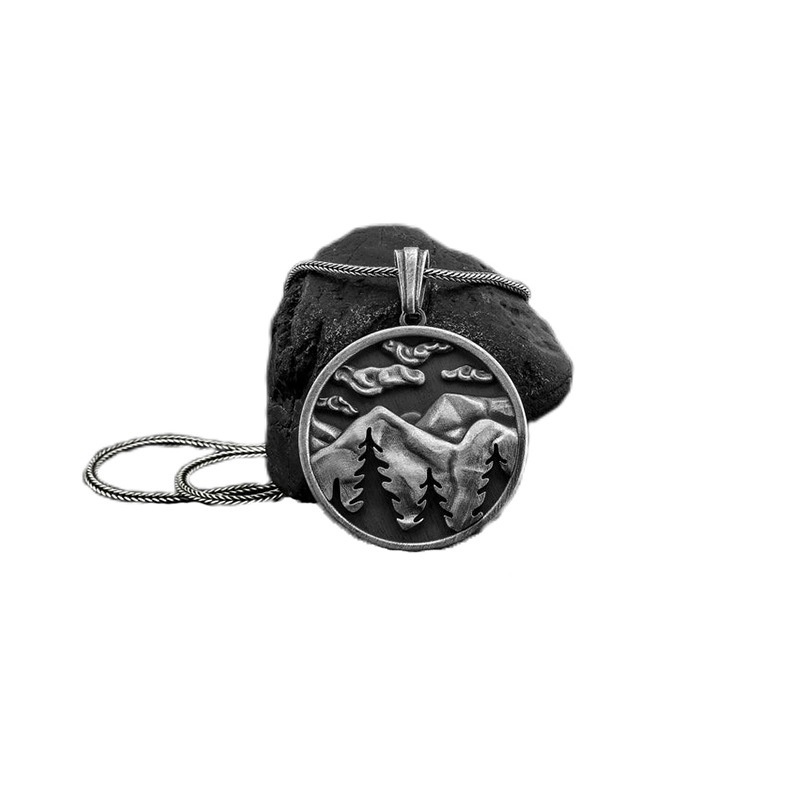 European And American Men's Hip-hop Necklace Stainless Steel Mountain Forest Pendant Retro Hip-hop Jewelry Poor