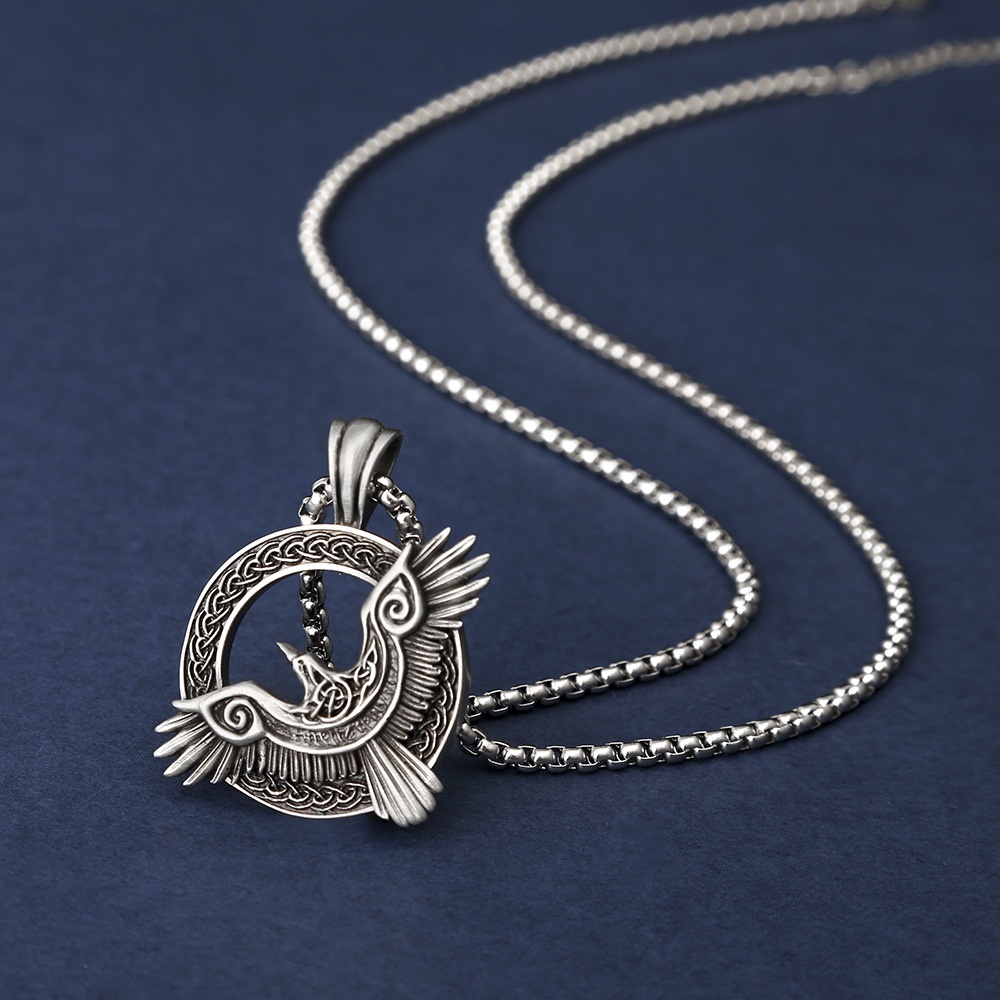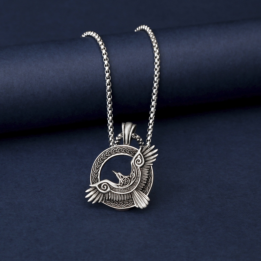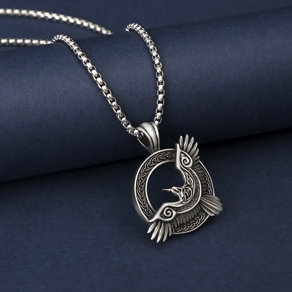 Celtic Raven Viking Pagan Pendant Men's Stainless Steel Necklace Animal Retro Jewelry