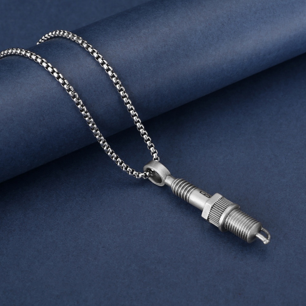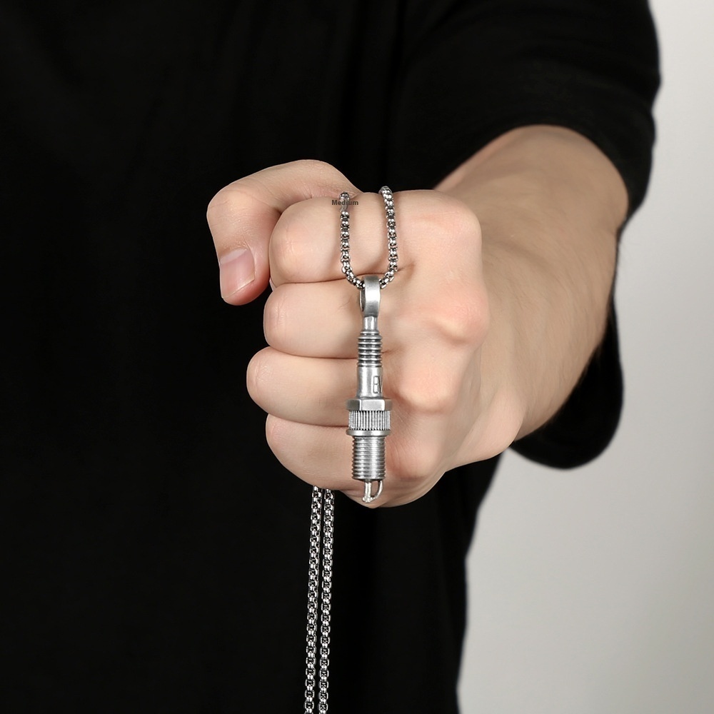 Cyberpunk Metal Spark Plug Pendant Men's Hip-hop Necklace European And American Style Necklace Stainless Steel Chain Jewelry