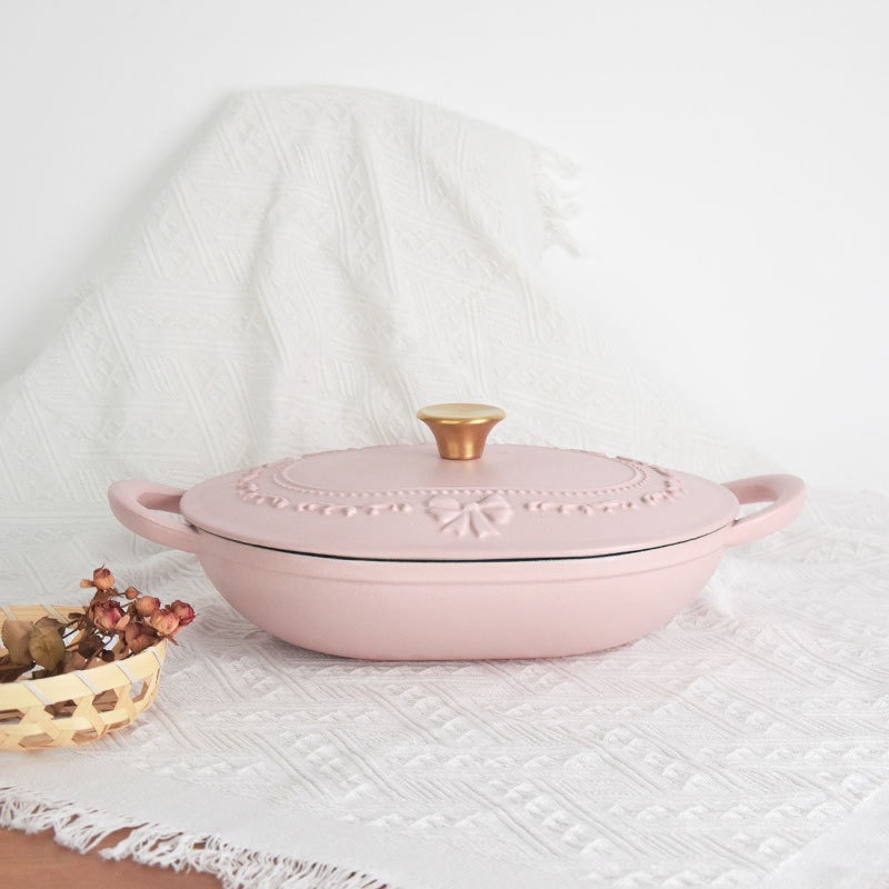 Y Fcook Cast Iron Enamel Pot Embossed Oval Pot Household Stew Pot Pan Roasted Stew Fish Induction Cooker Soup Pot
