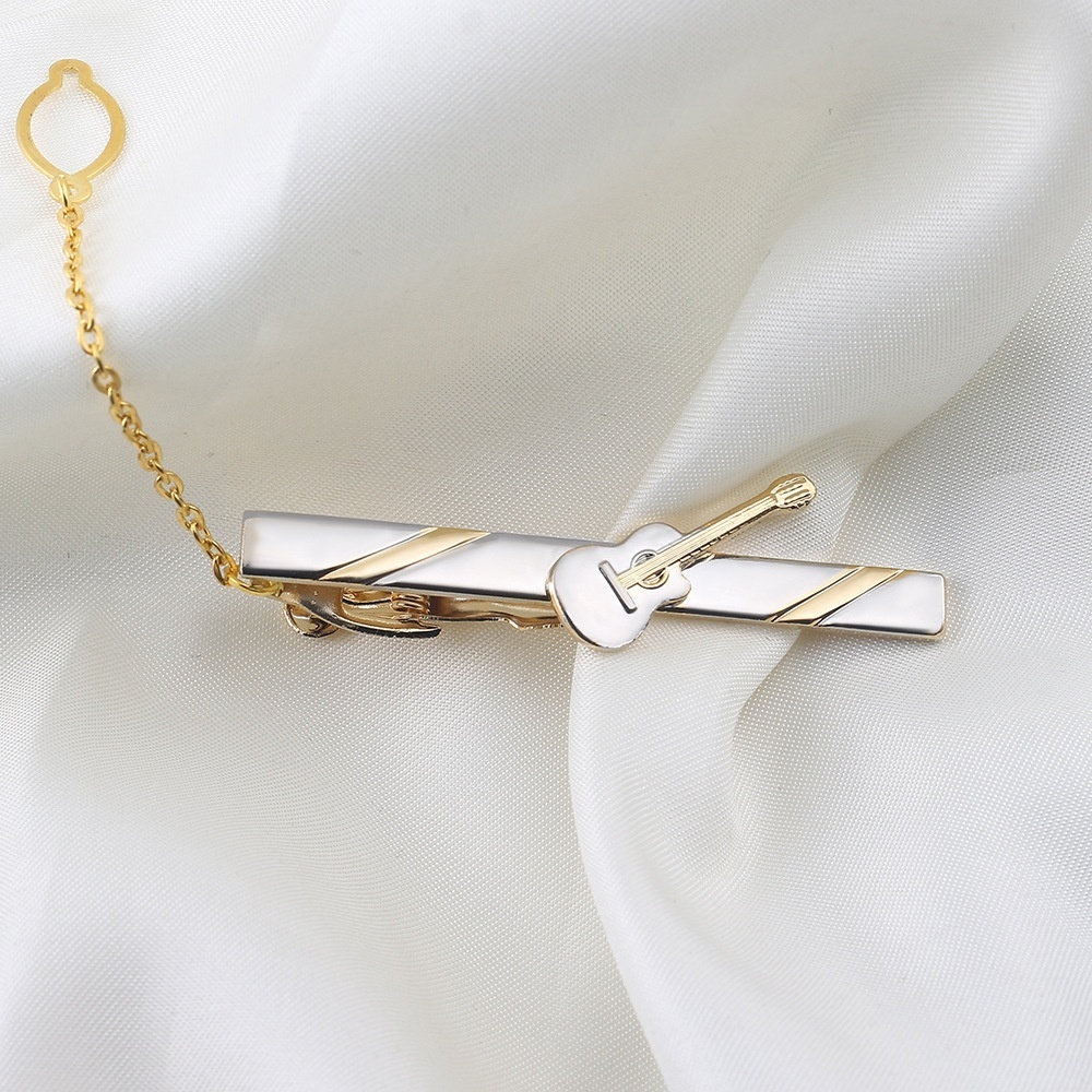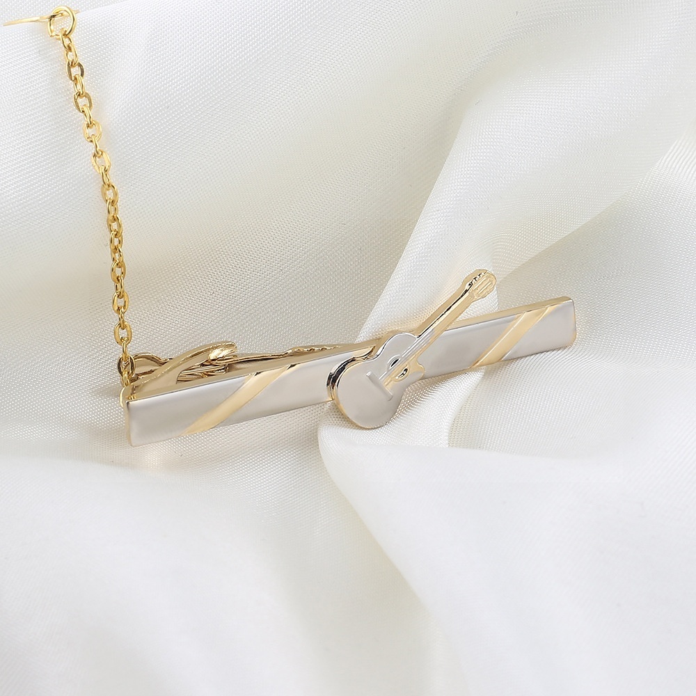 High-end Boutique Gold Guitar Tie Clip Foreign Trade Business Korean Fashion Copper Tie Clip