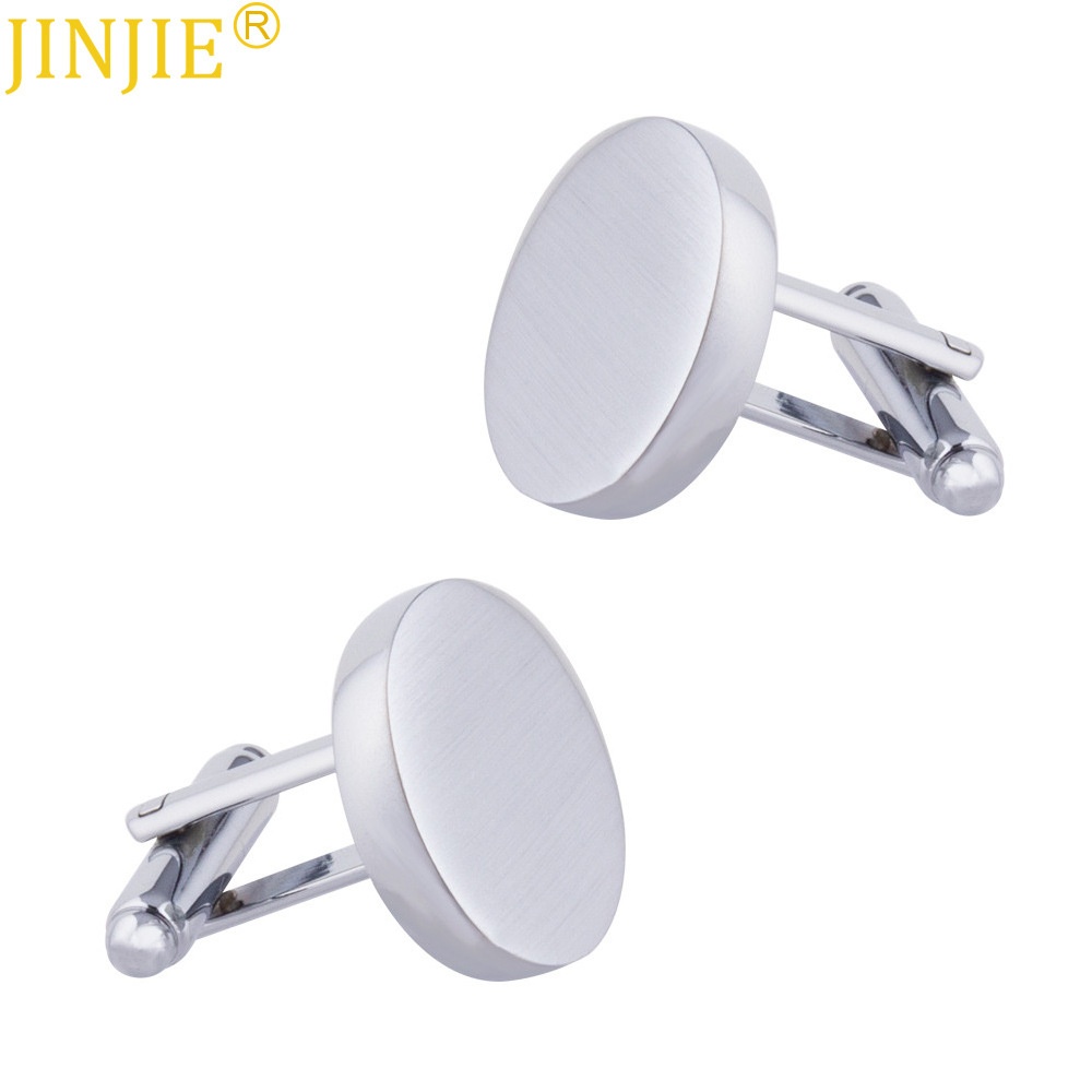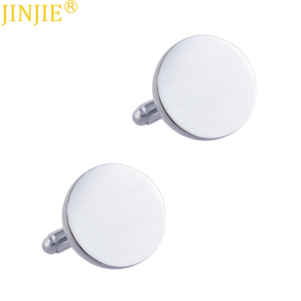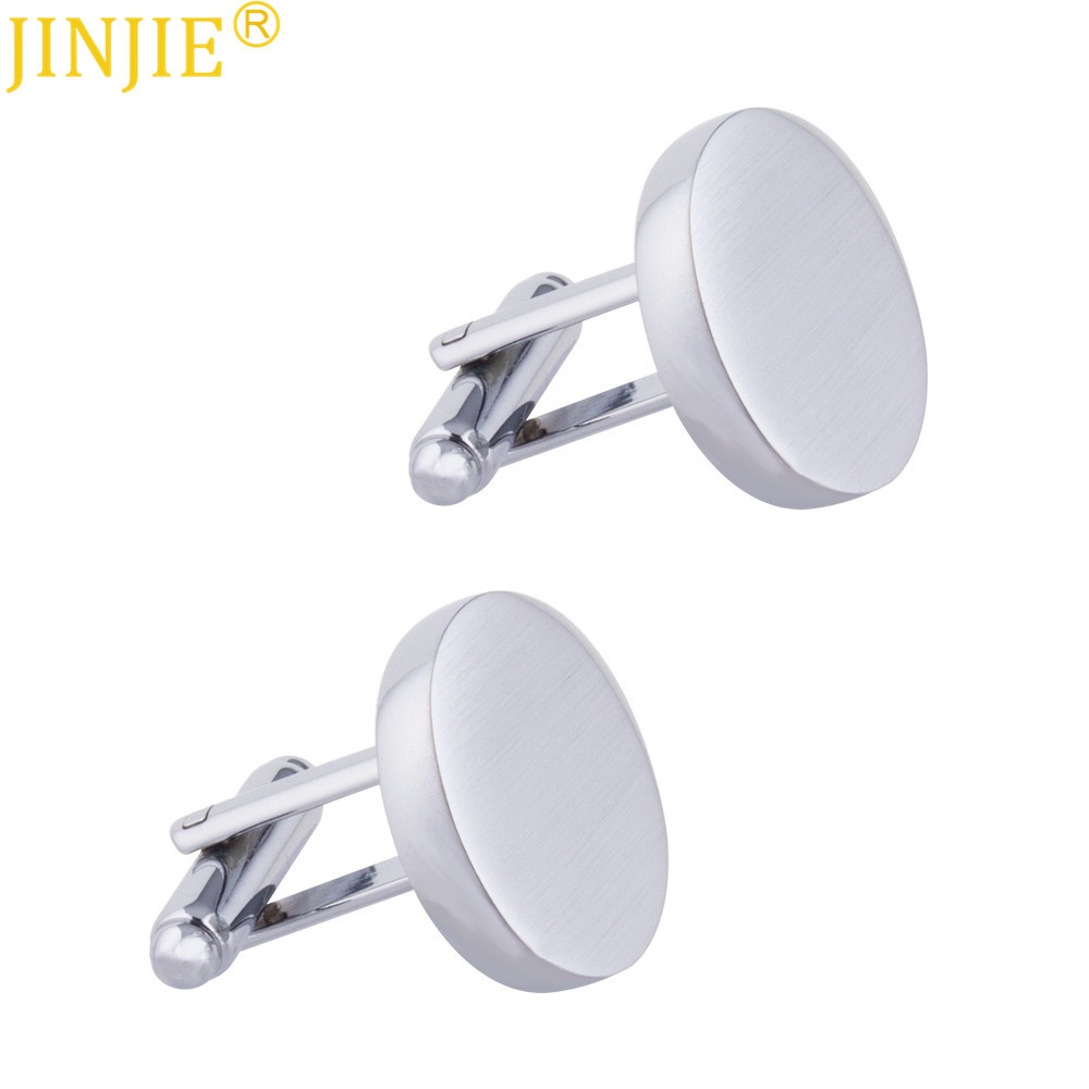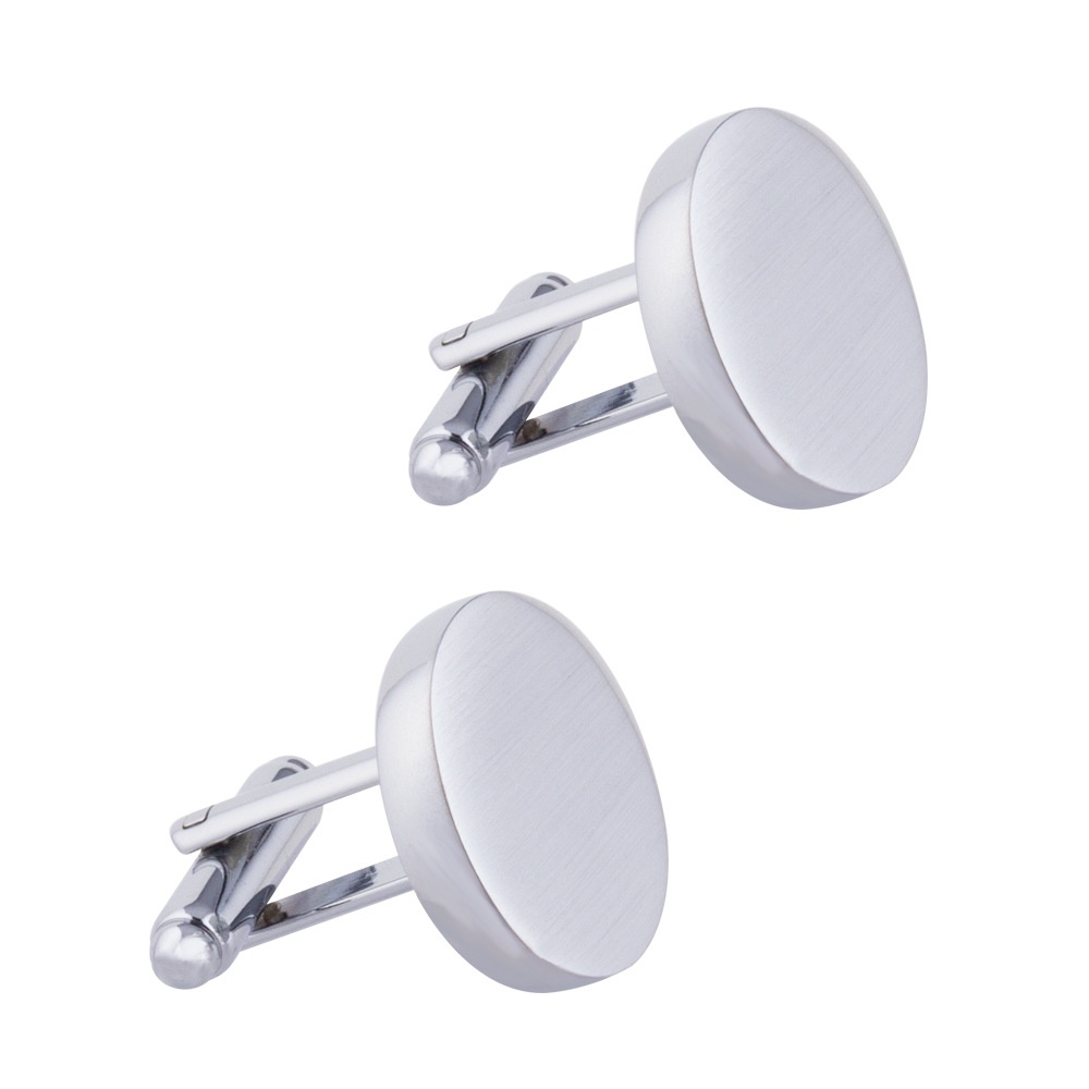 Round Glossy Brushed Metal Cufflinks Men's Simple Style French Shirt Cuff Buttons Cuffliks