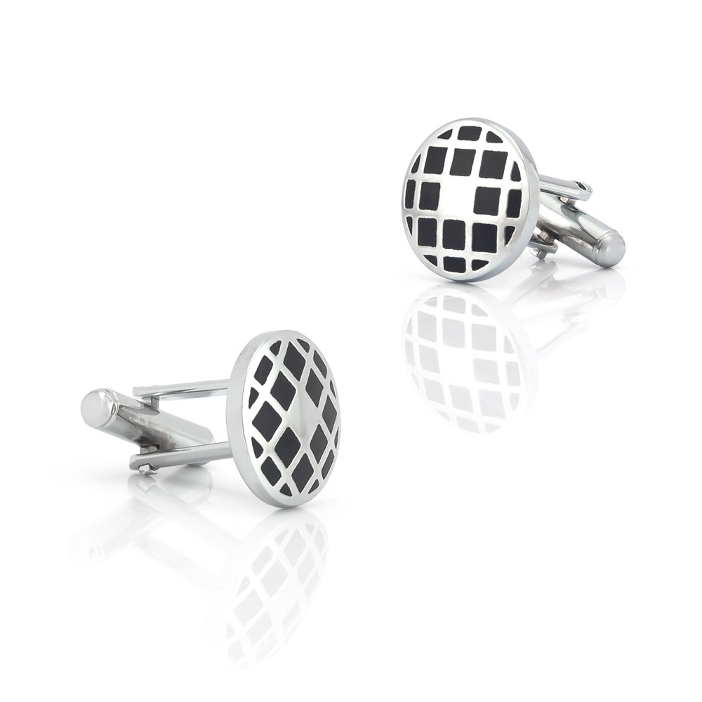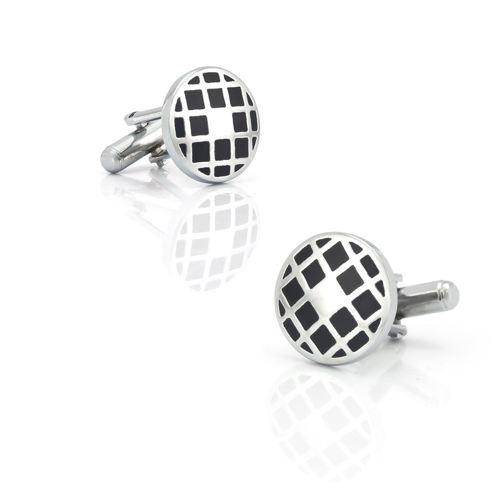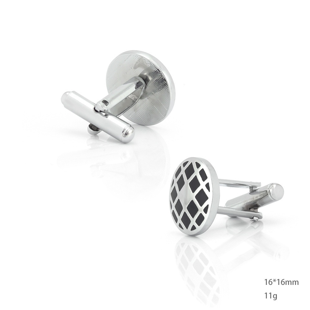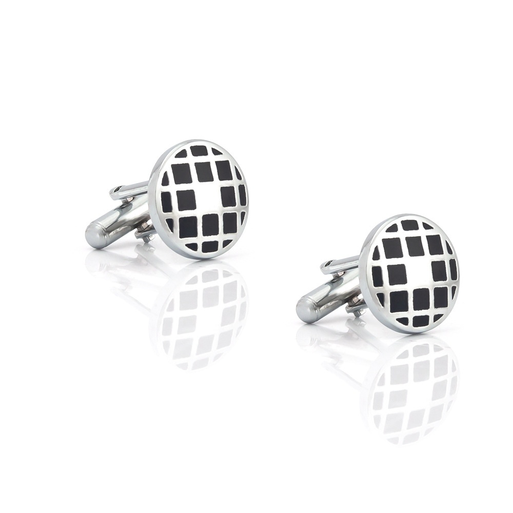 Round Grid Pattern Oil Drip Enamel Metal Cufflinks Foreign Trade Men's French Shirt Cufflinks