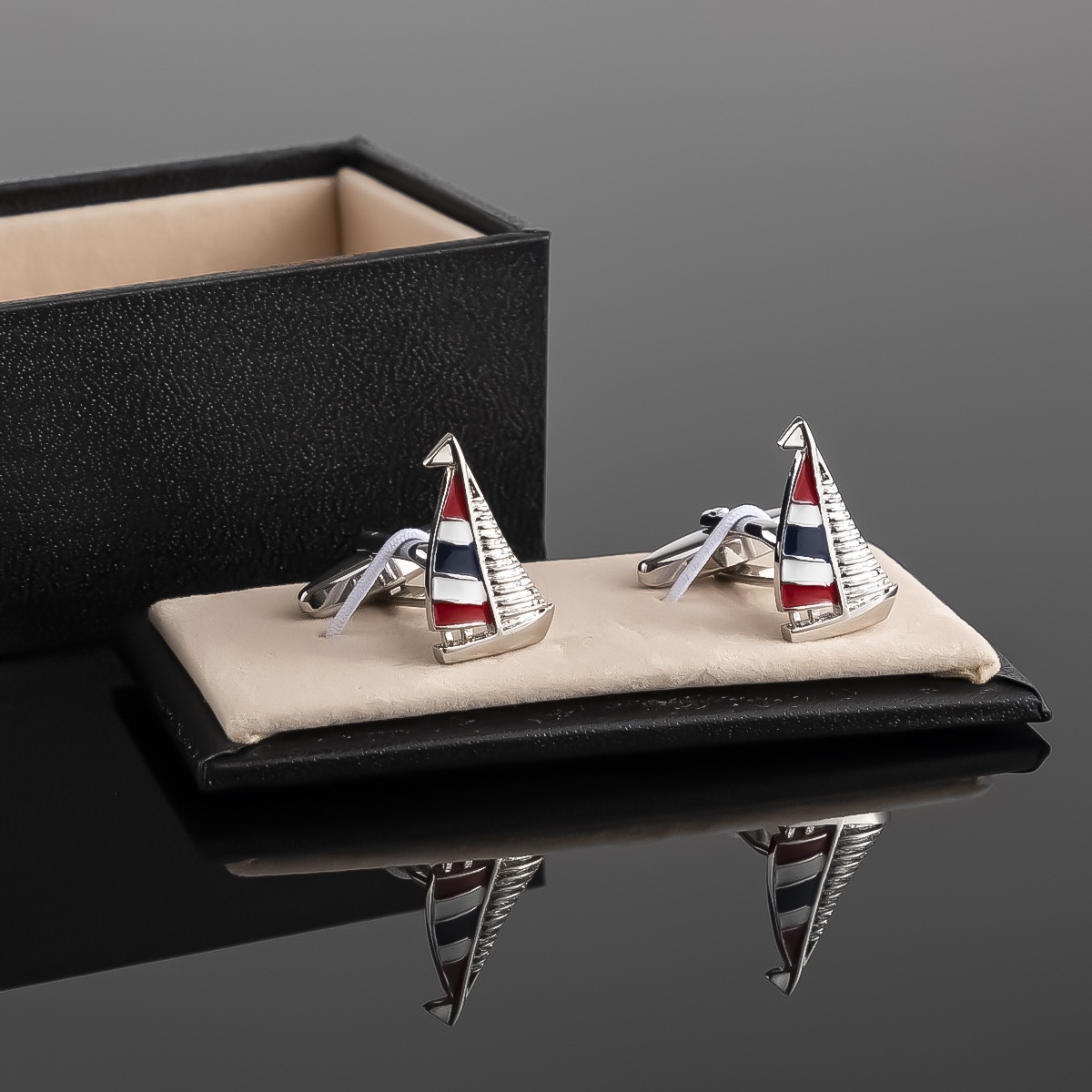 High-grade Blue And White Sailboat Paint Enamel Metal Cufflinks Foreign Trade Men's French Shirt Cufflinks