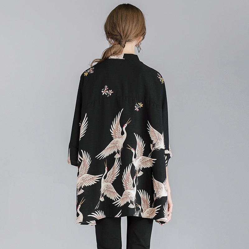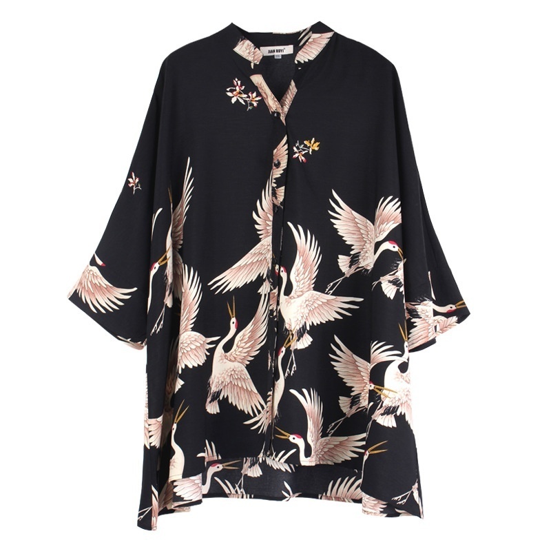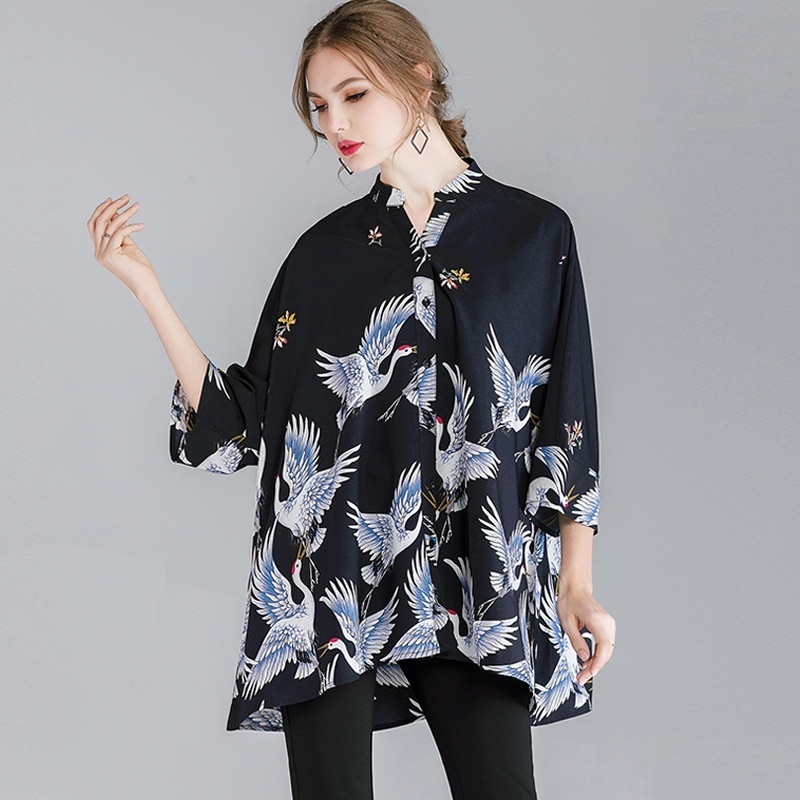 Fat Mm Plus Size Women's Clothing Spring Tops For Women Crane Print Loose200 Pounds Plus Size Shirts For Women