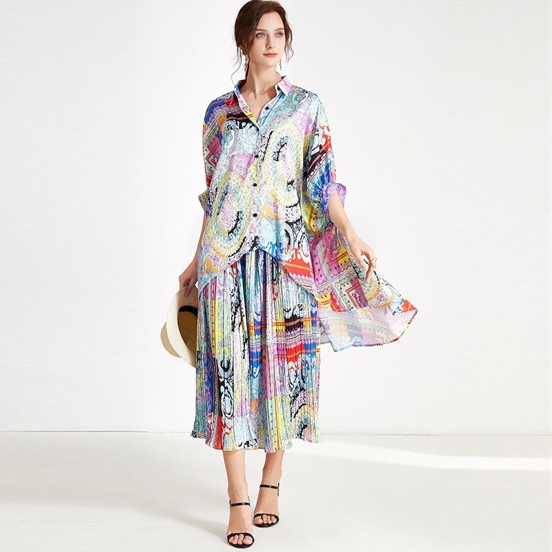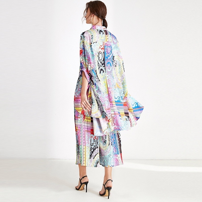Plus Size Women's Suits Spring And Summer Fat Mm Loose Fashion Satin Print Slim Two-piece Suits Women's