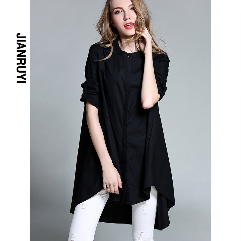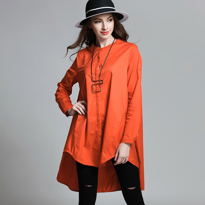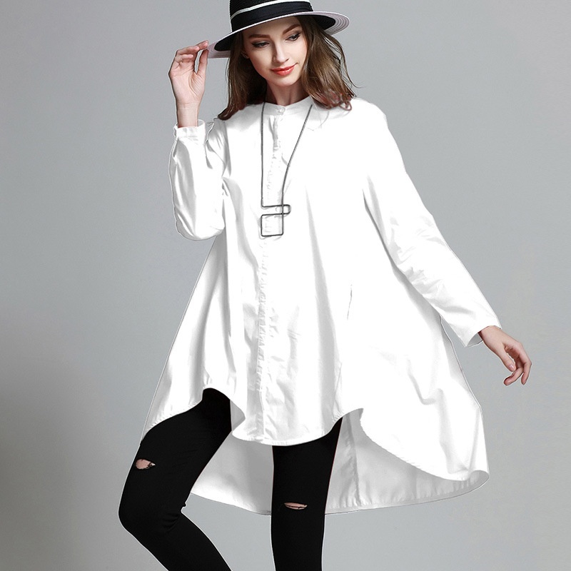 Women's Clothing Fat Mm Large Size Shirt Female Spring Pure Cotton Small Stand Collar Loose Slim Top