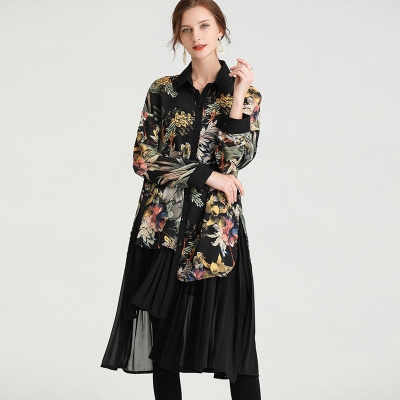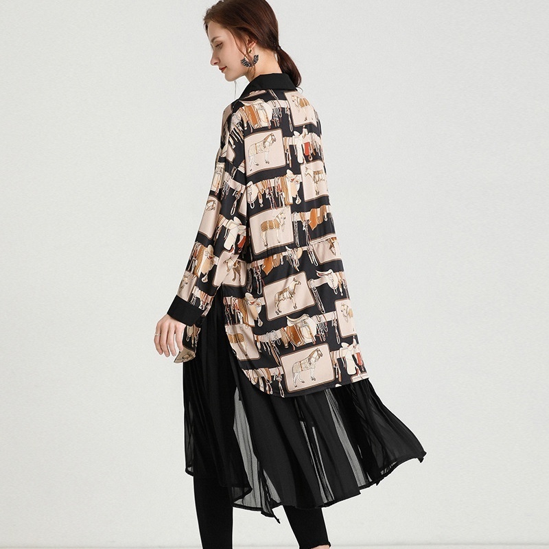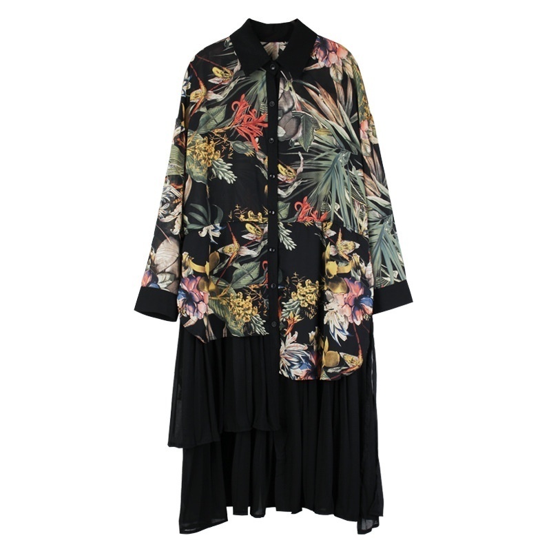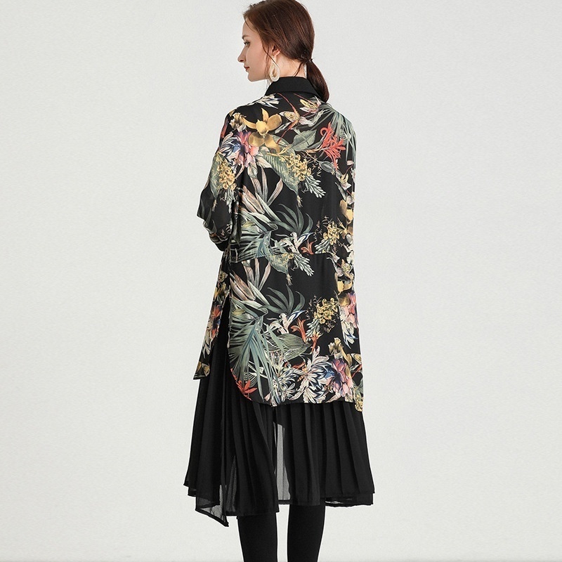 Plus Size Women's Clothing Spring Style Fashionable Splicing Pleated Medium And Long Loose Plus Size Chiffon Cardigan