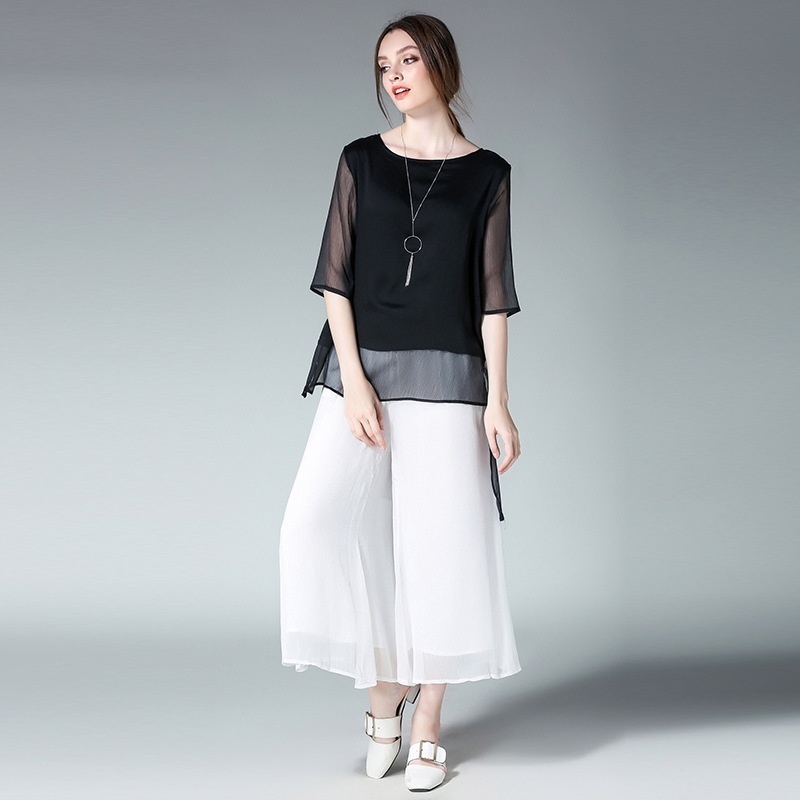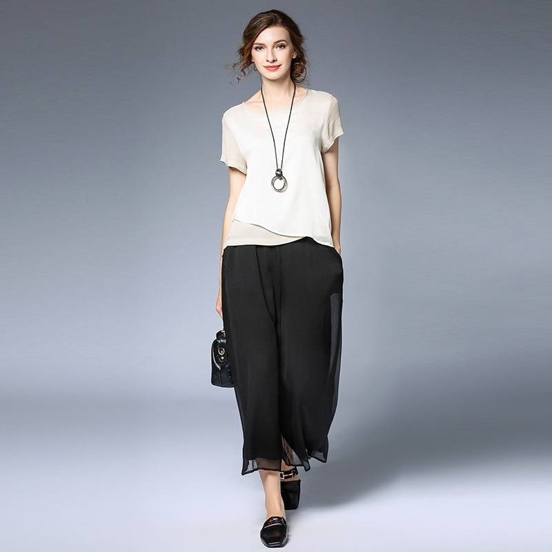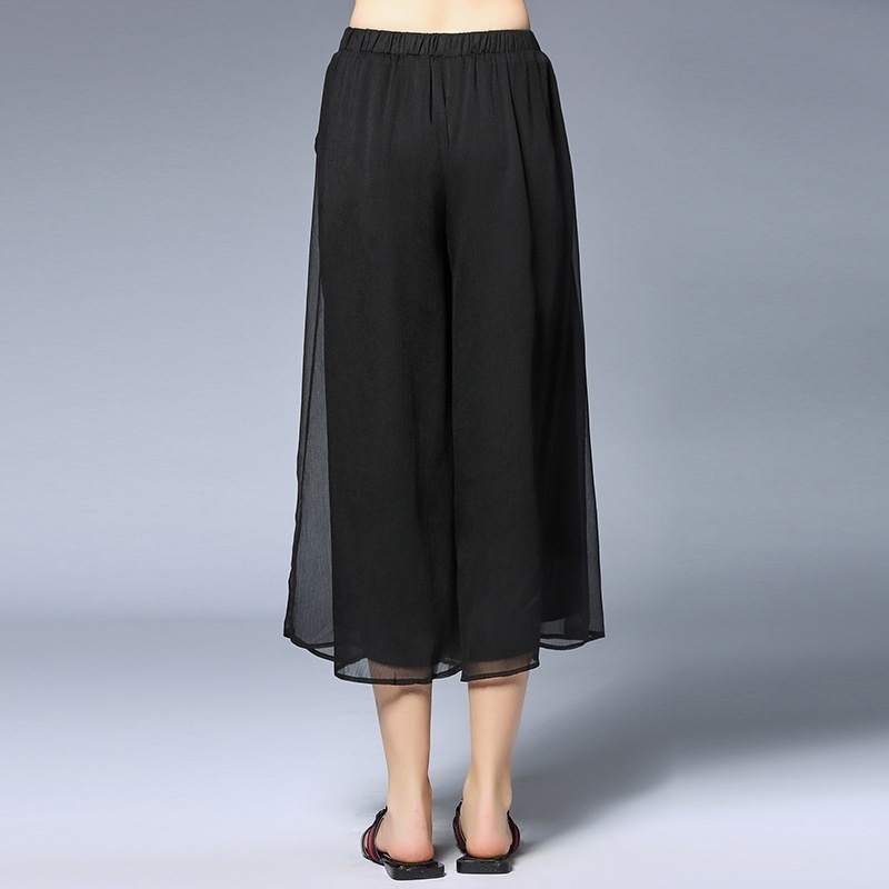 Spring And Summer Fat Women's Clothing For Fat Mm Large Size All-match Slim Chiffon Pants Skirt Elastic Waist Wide Leg Nine-point Skirt Pants