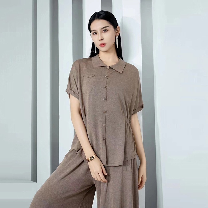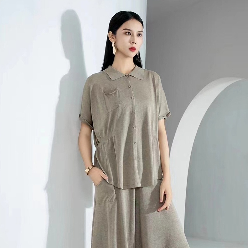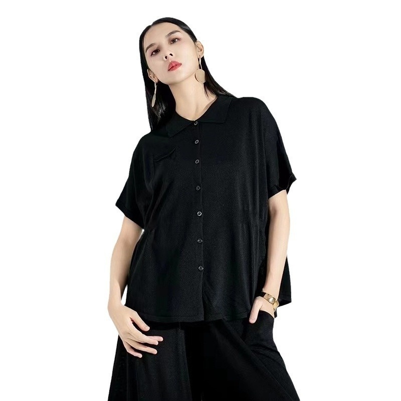 Slightly Fat Women's Lapel Sweater Female Summer Wear Silk Cardigan Simple Temperament Slim Top