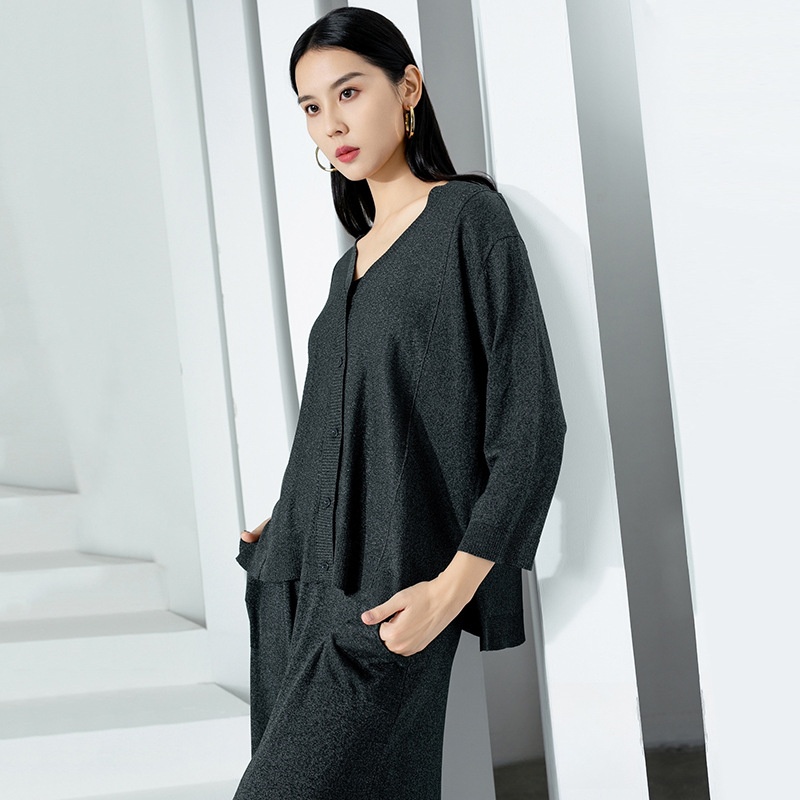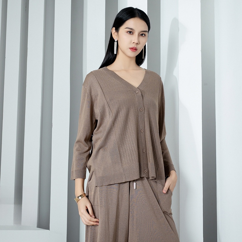 Base Shirt Knitted Cardigan Women Spring And Summer Silk Slightly Fat Women's Wear V-neck Slim Knitted Top
