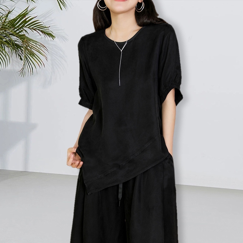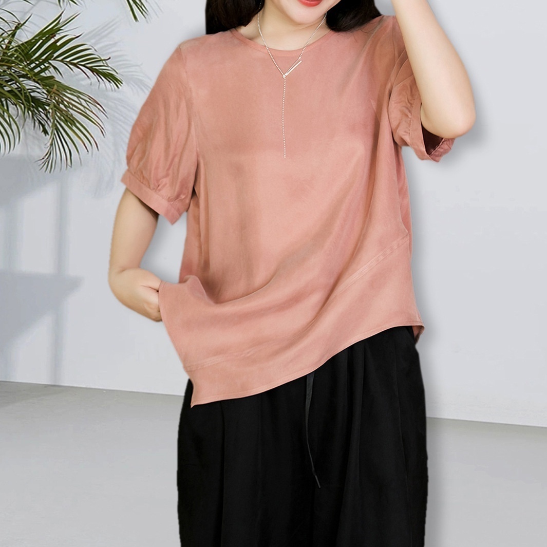 Summer Style For Fat Women's Clothing,Heavy Copper-ammonia Silk Design,Irregular Top,Large Size,Loose Short-sleeved T-shirt For Women